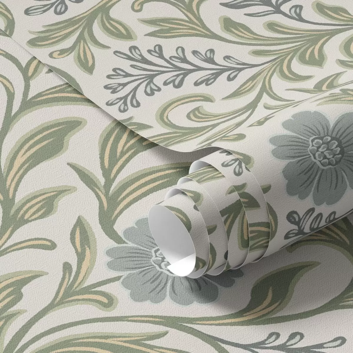 Behang Saliegrijs bloemenornament op een lichte achtergrond Nr. a00712