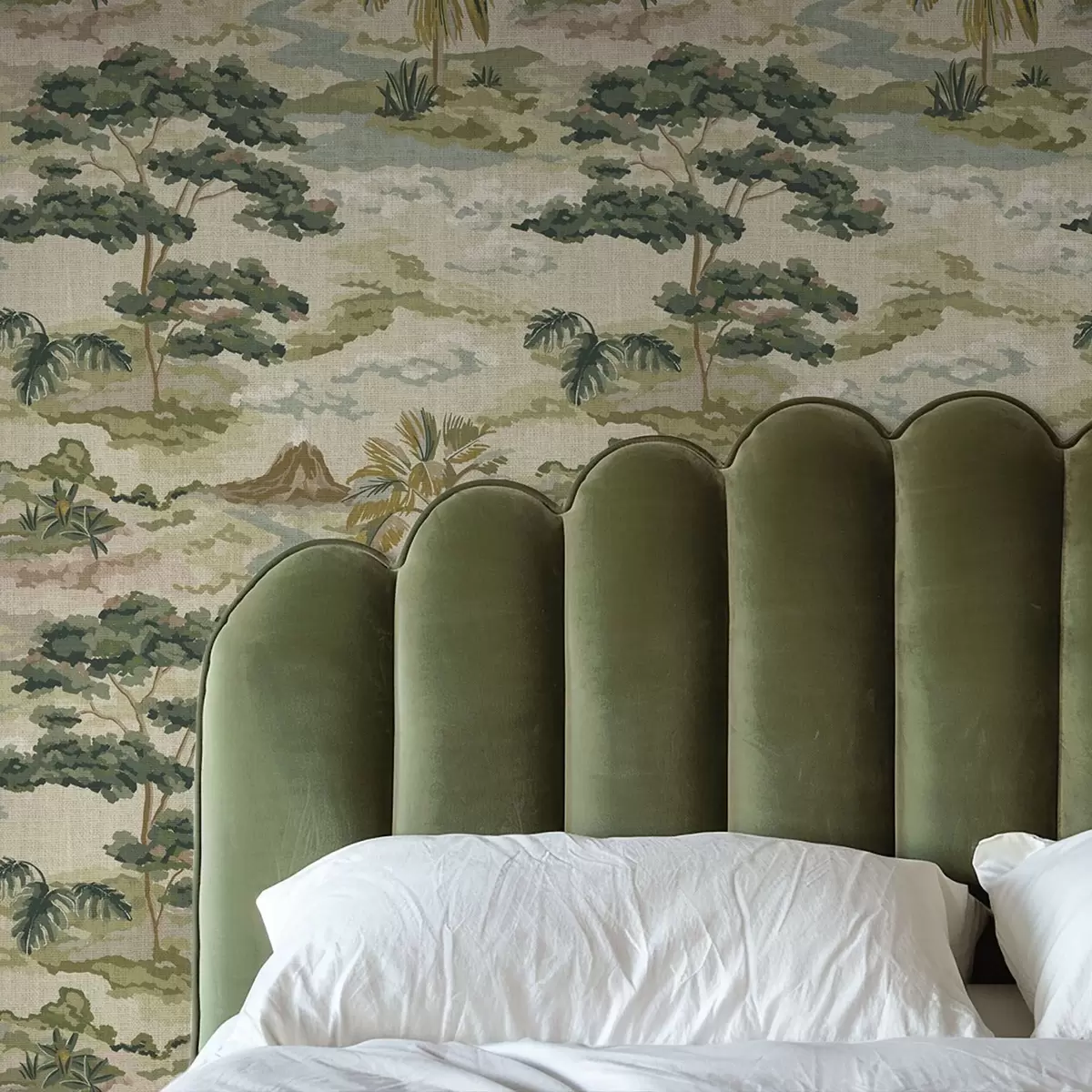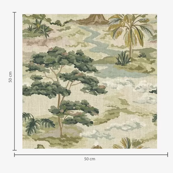 Behang Landschap met rivier, bomen en palmbomen in zachte tinten Nr. a00736