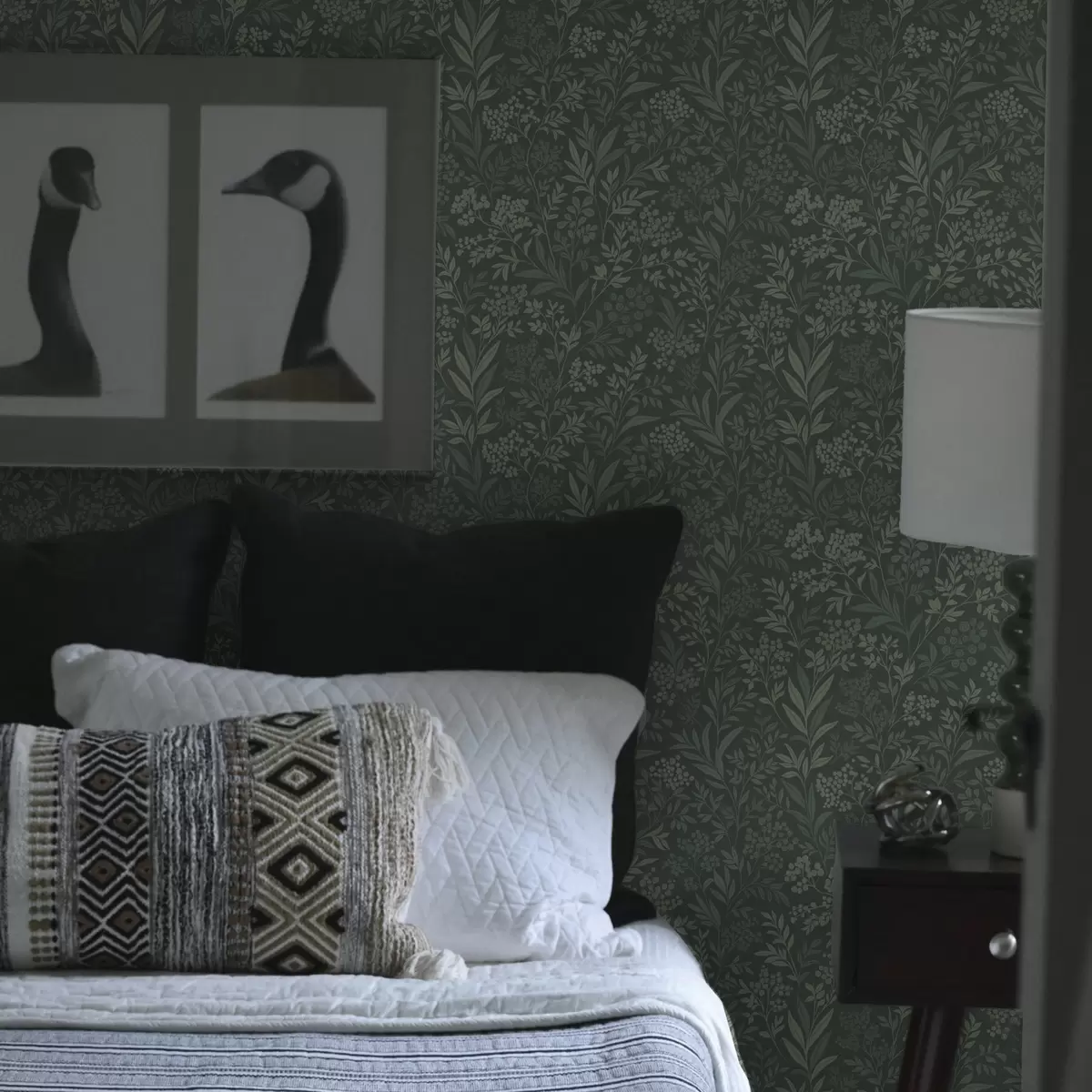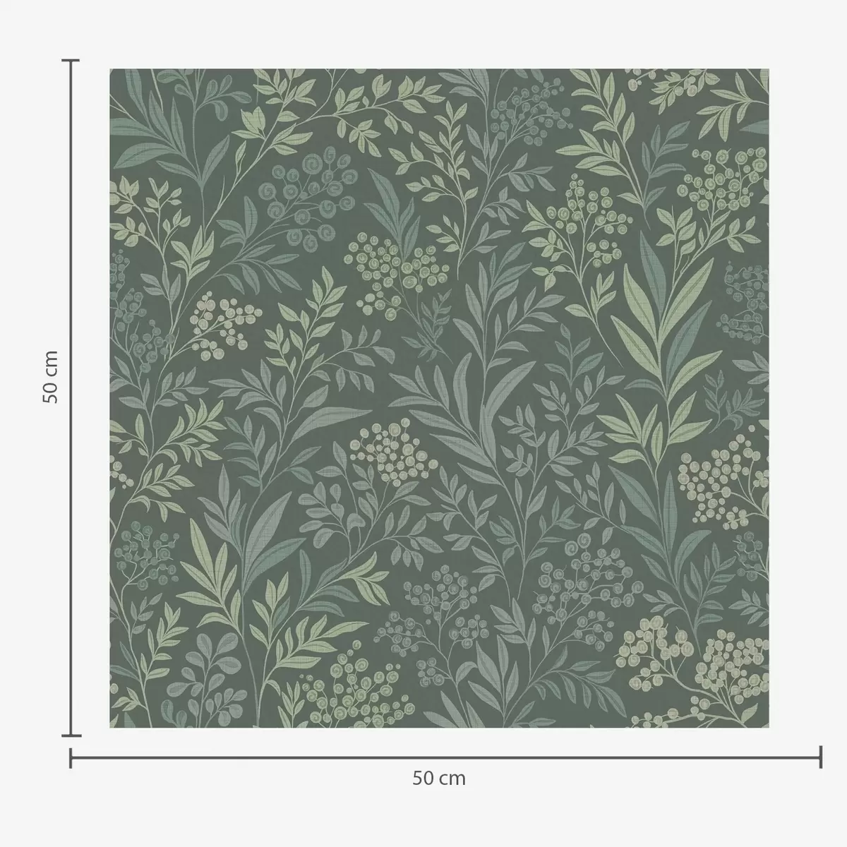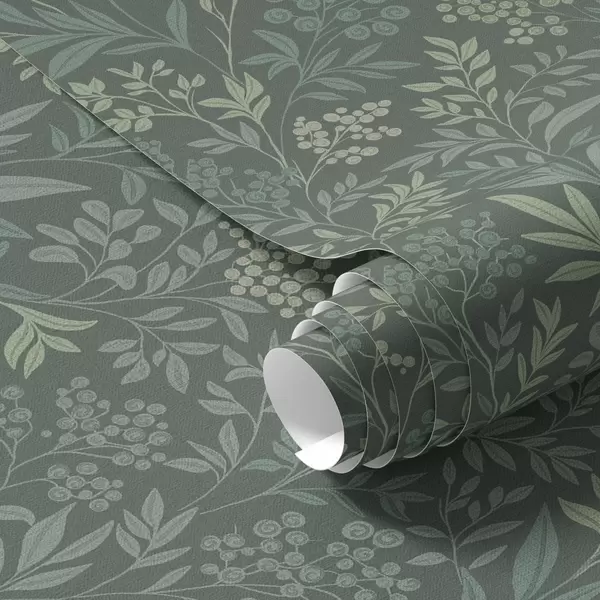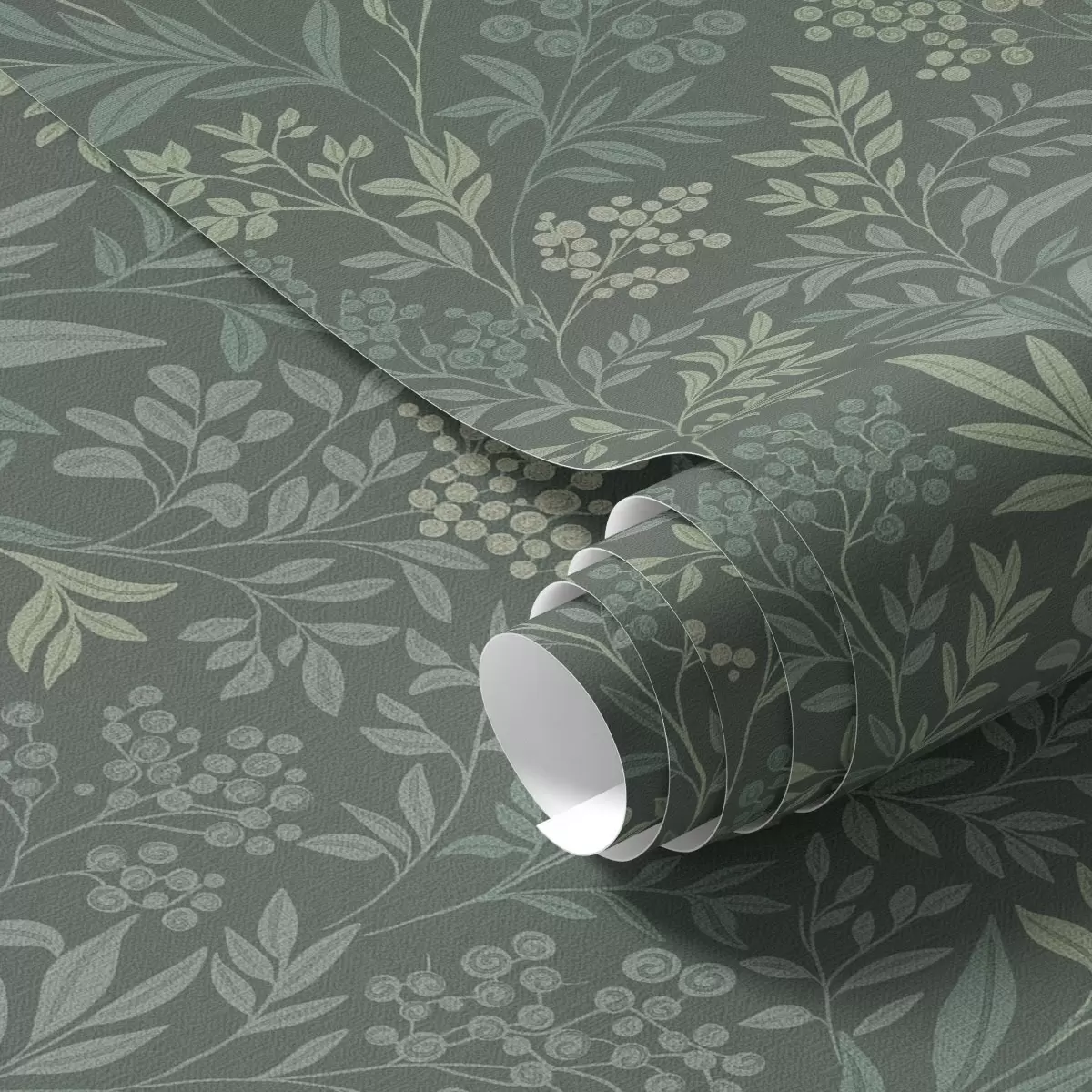 Behang Smaragdgroene grassen en bessen, fijn botanisch patroon Nr. a00740