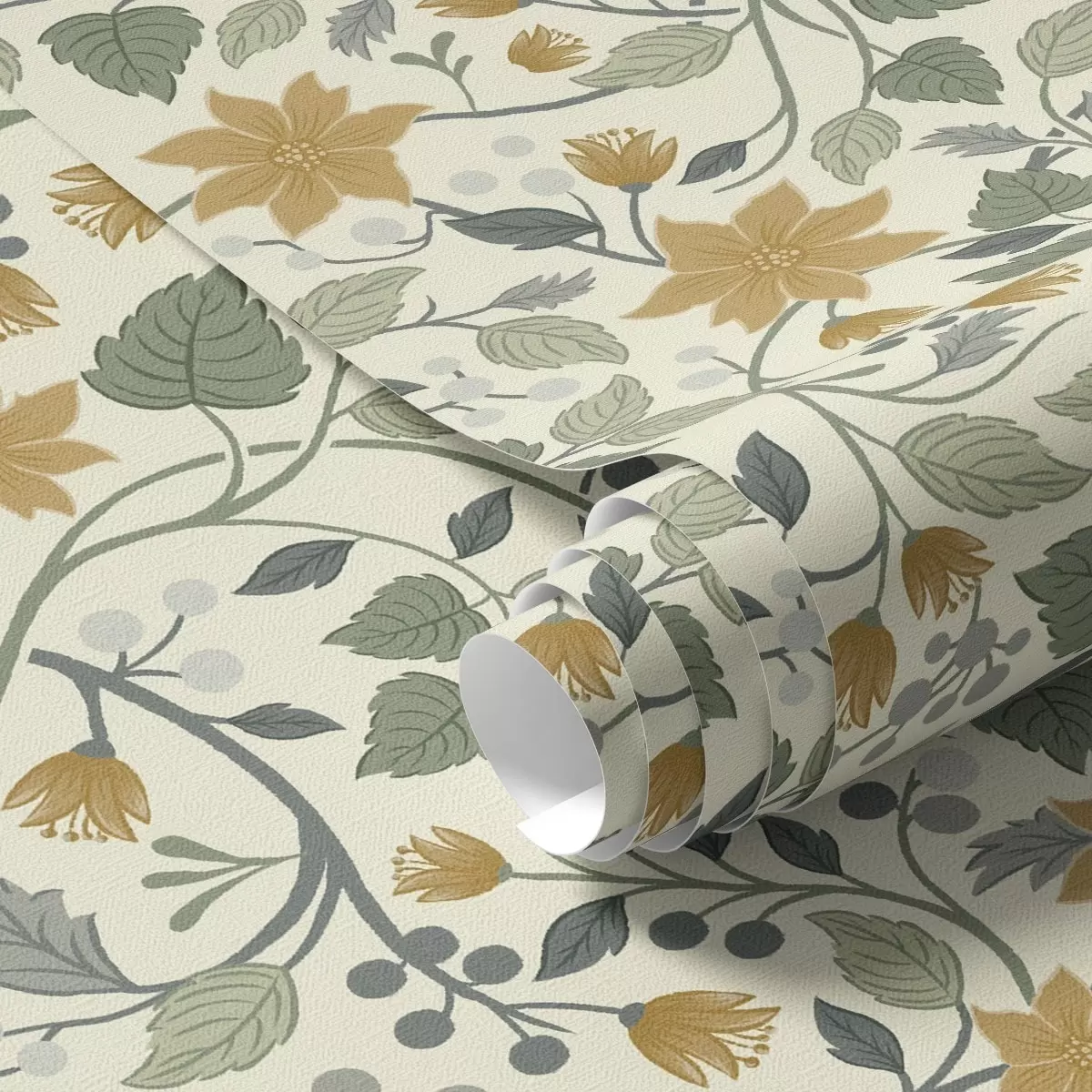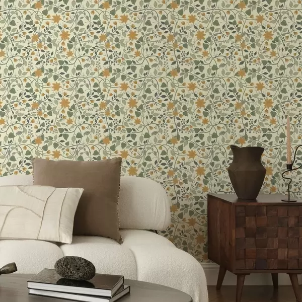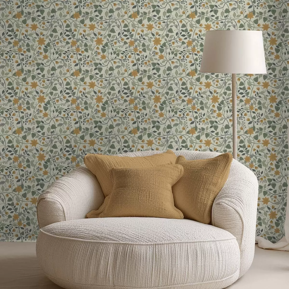 Behang Klimplant met gele bloemen en bessen Nr. a00750