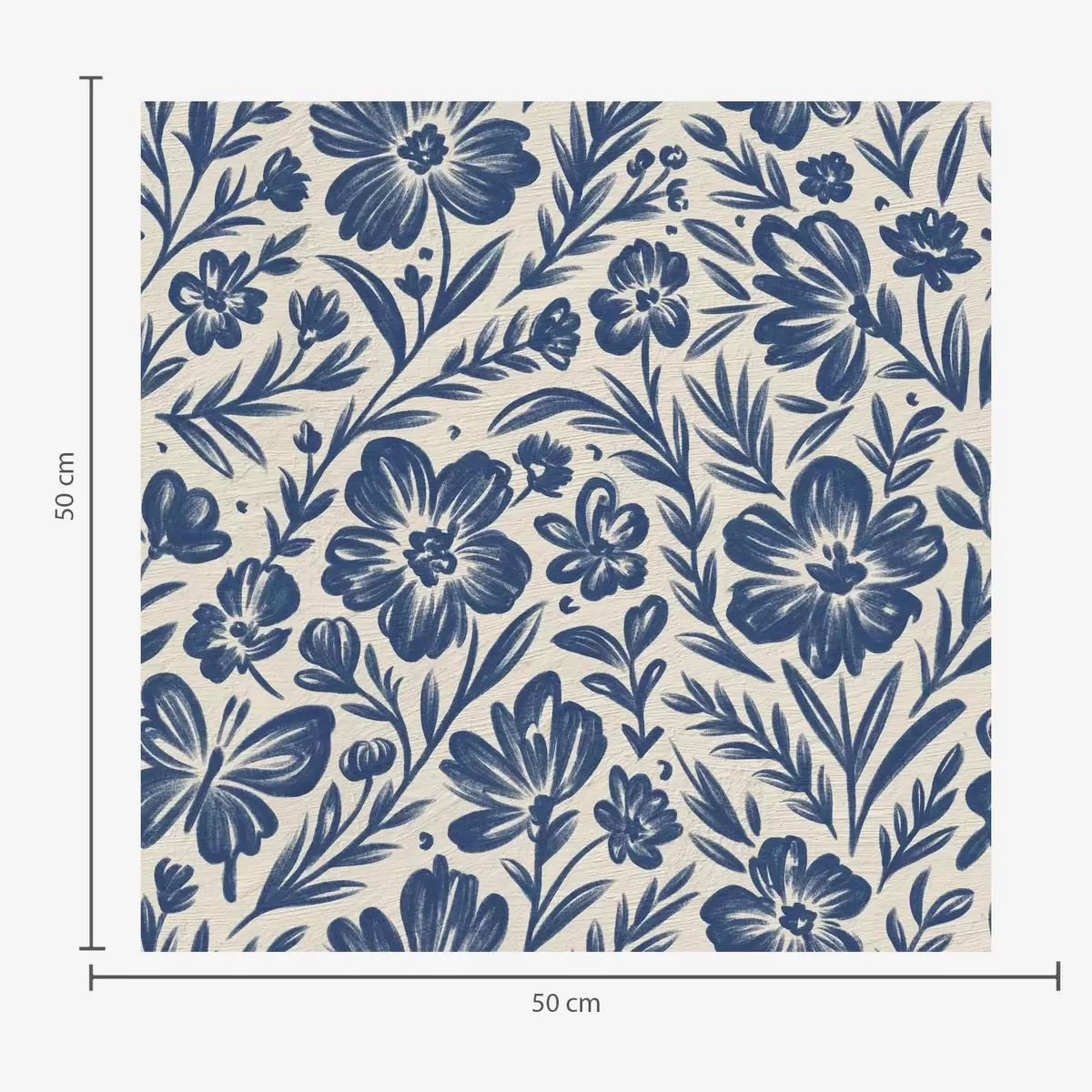 Behang Blauw bloemenornament met vlinders Nr. a00758