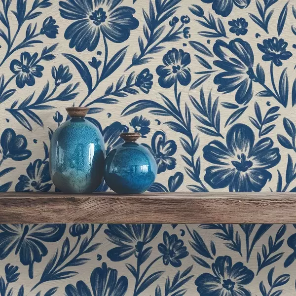 Behang Blauw bloemenornament met vlinders Nr. a00758