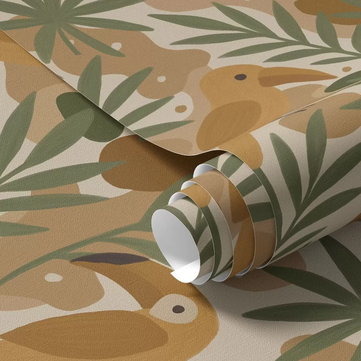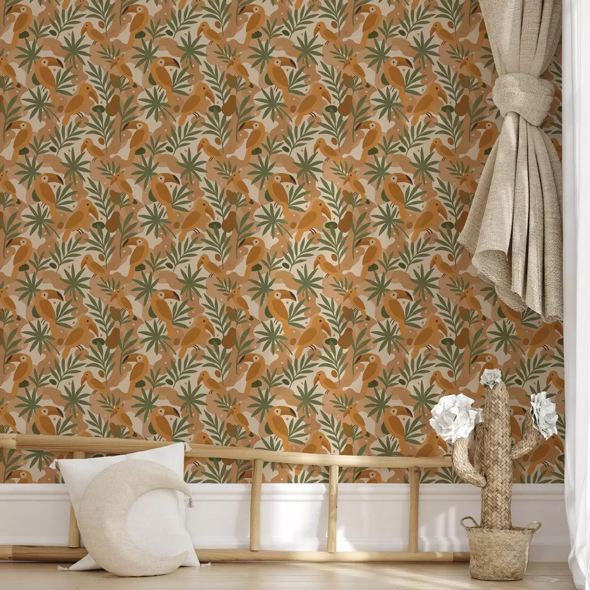 Behang Gestileerde toekans tussen palmbladeren Nr. a00762