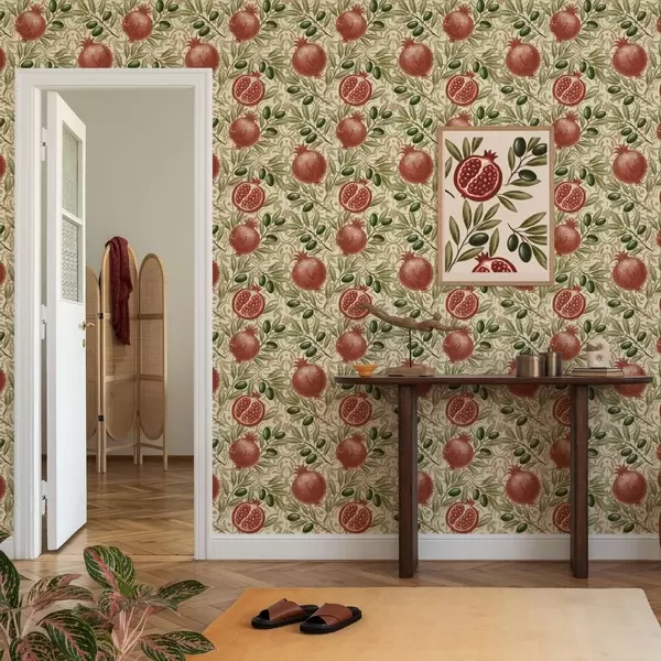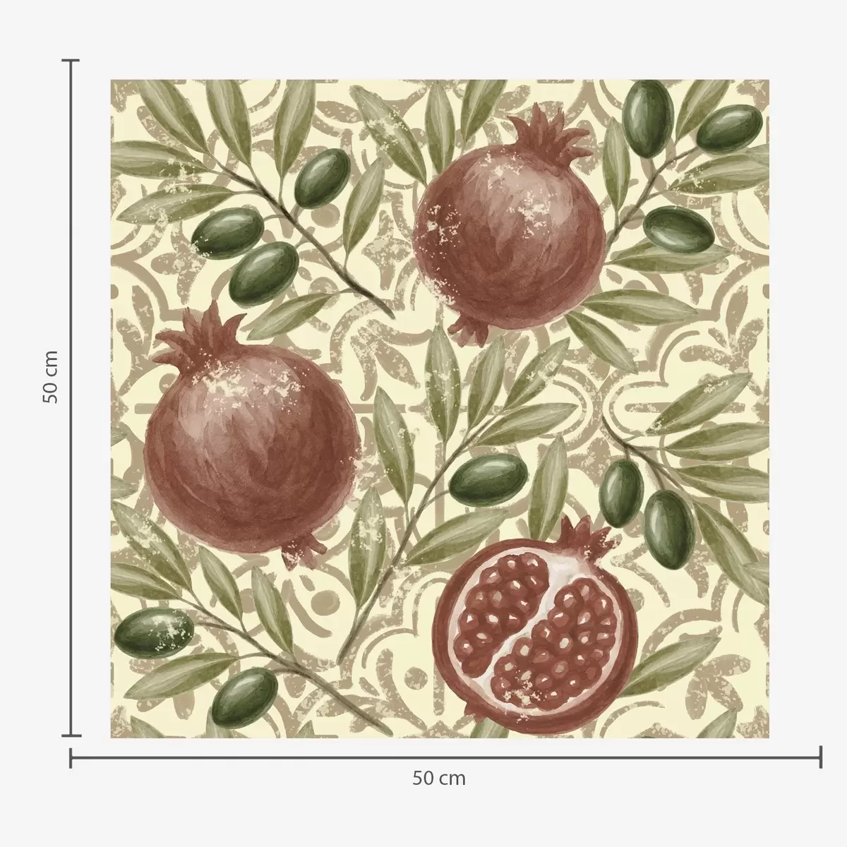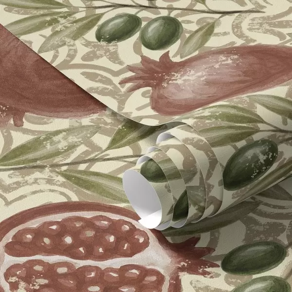 Behang Granaatappel en olijftakken op decoratieve achtergrond Nr. a00764