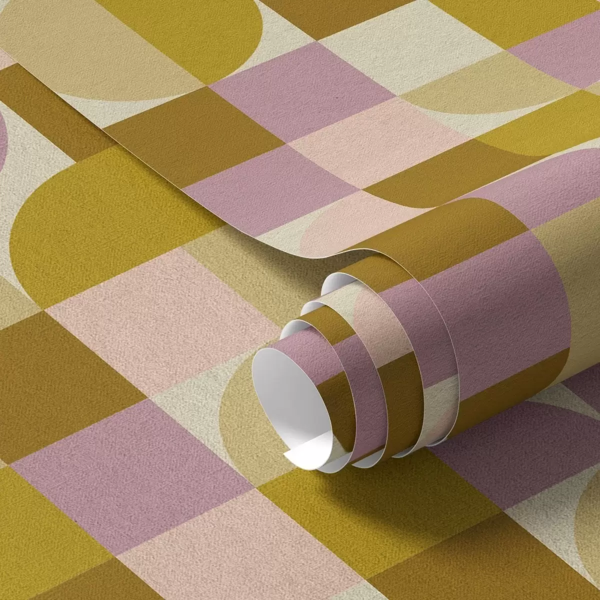 Behang Modulaire geometrie in roze en mosterdtinten Nr. a00770v1