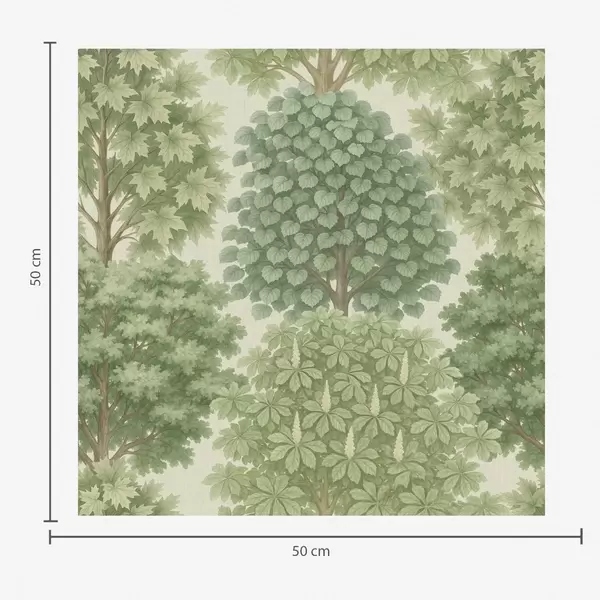Behang Boomgaard in zachte groentinten op een lichte ondergrond Nr. a00775