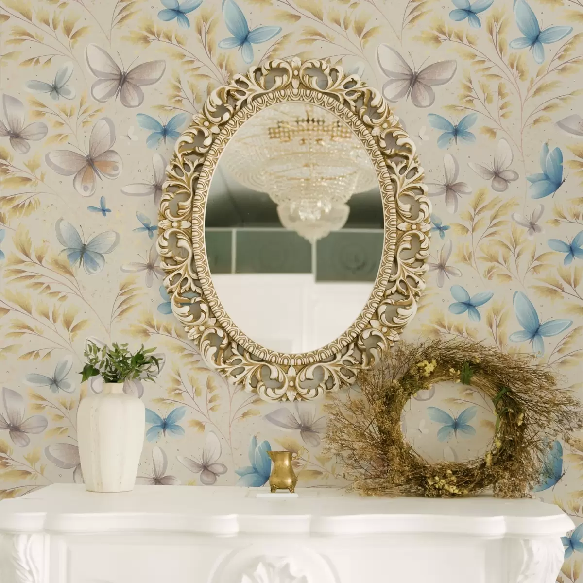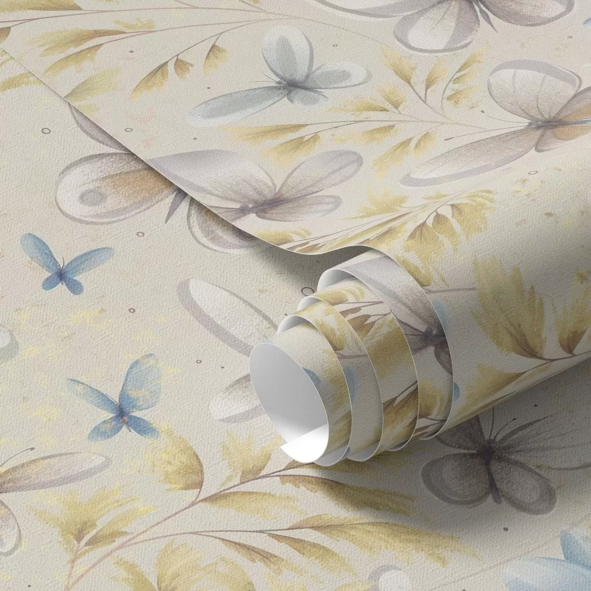 Behang Lichte vlinders tussen gele bladeren op een lichte achtergrond Nr. a00795