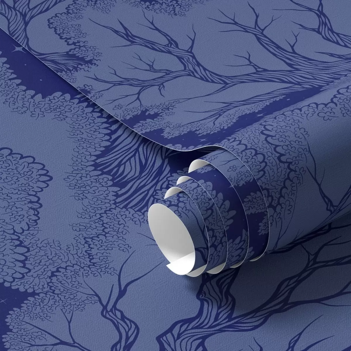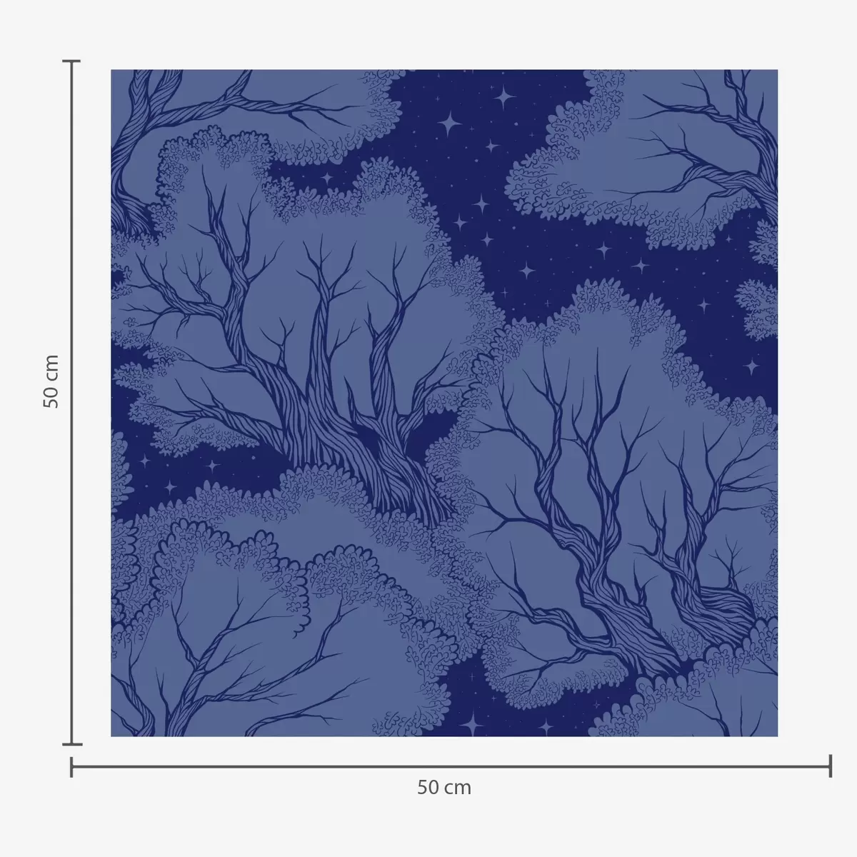 Behang Silhouetten van bomen onder een sterrenhemel in blauwtinten Nr. a00798