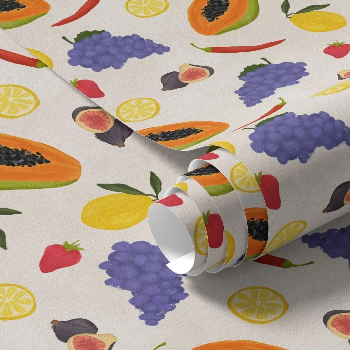 Behang Papaja, druiven en citroenen — een kleurrijke fruitmix Nr. a00803