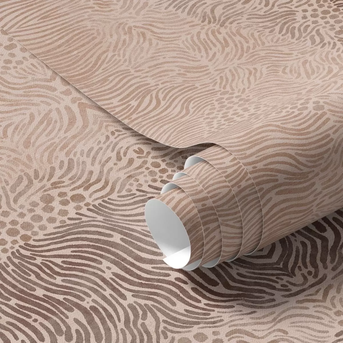 Behang Golvend geometrisch patroon in een licht beige-bruin kleurenpalet Nr. a00804