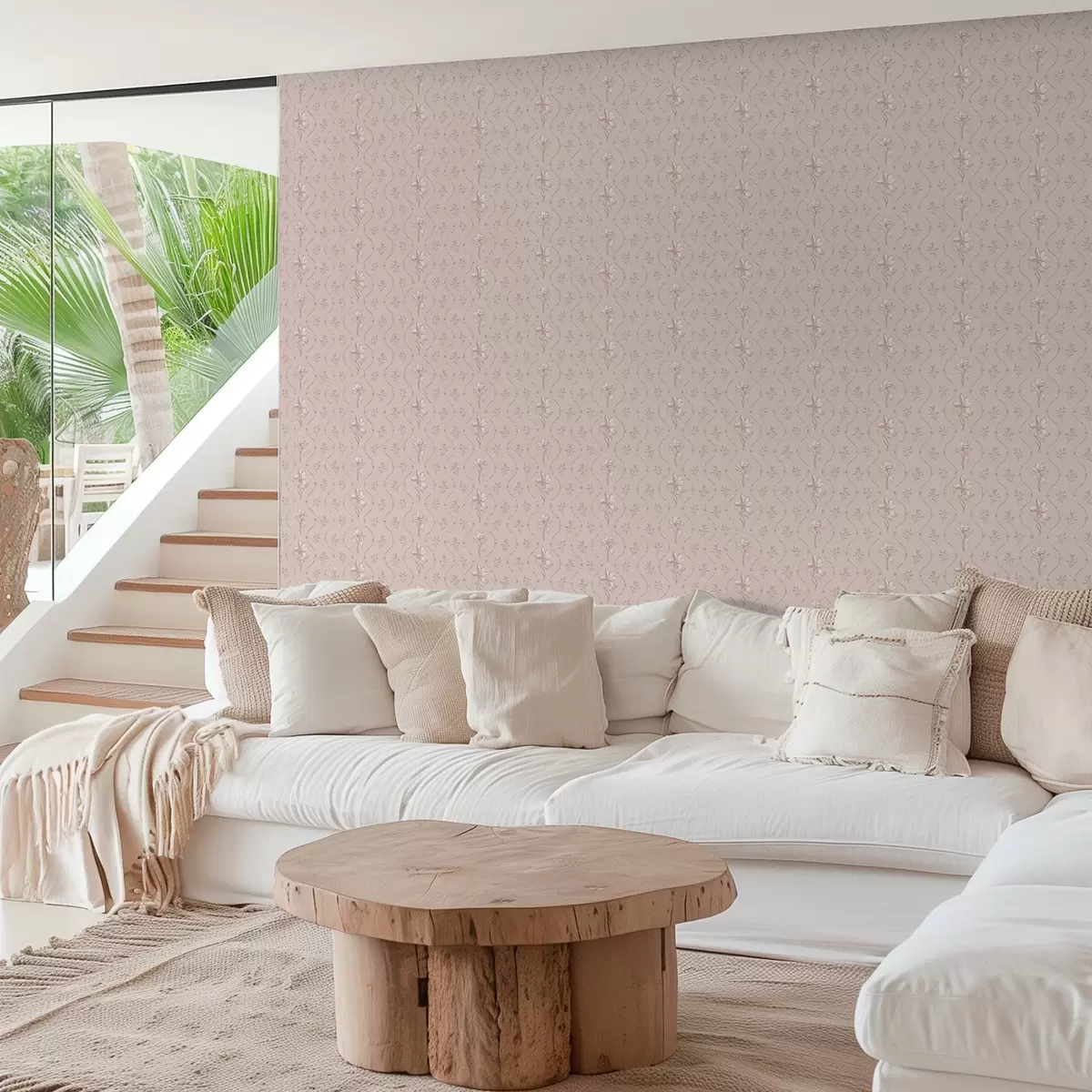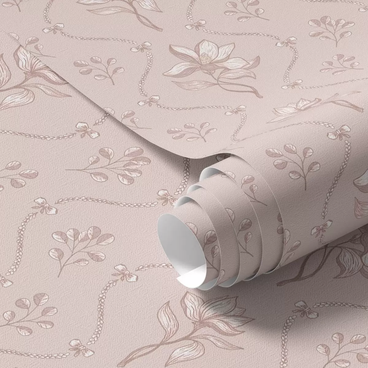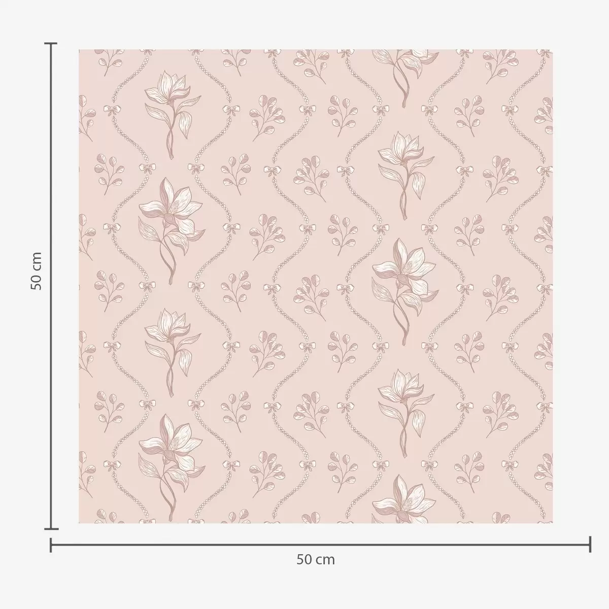 Behang Kleine bloemen en linten in zachte roze en beige tinten Nr. a00808
