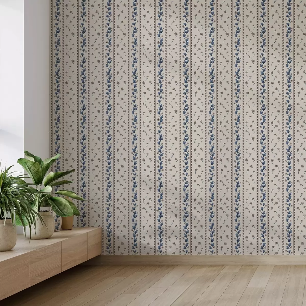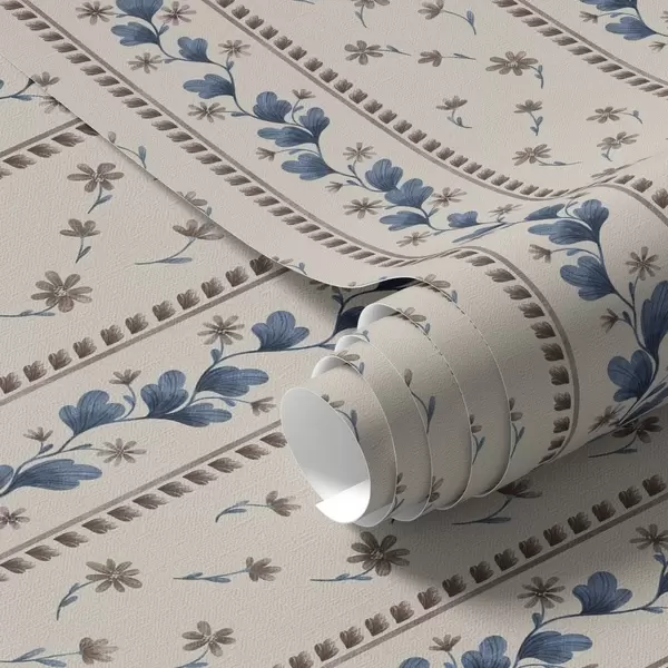 Behang Verticale bloemenstrepen in blauwbruine tinten Nr. a00811v3
