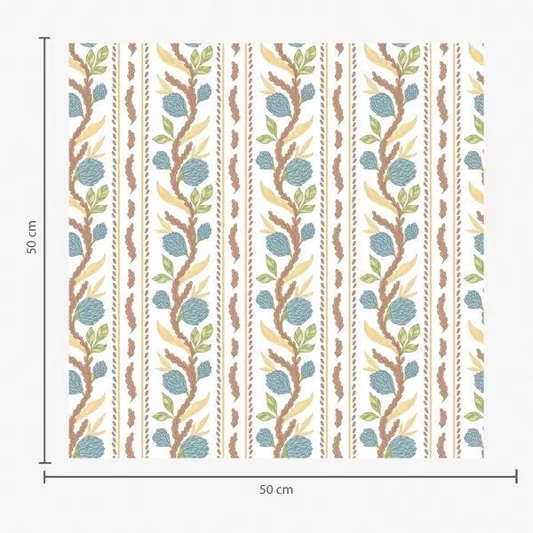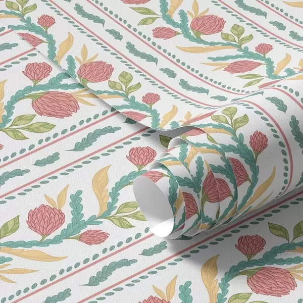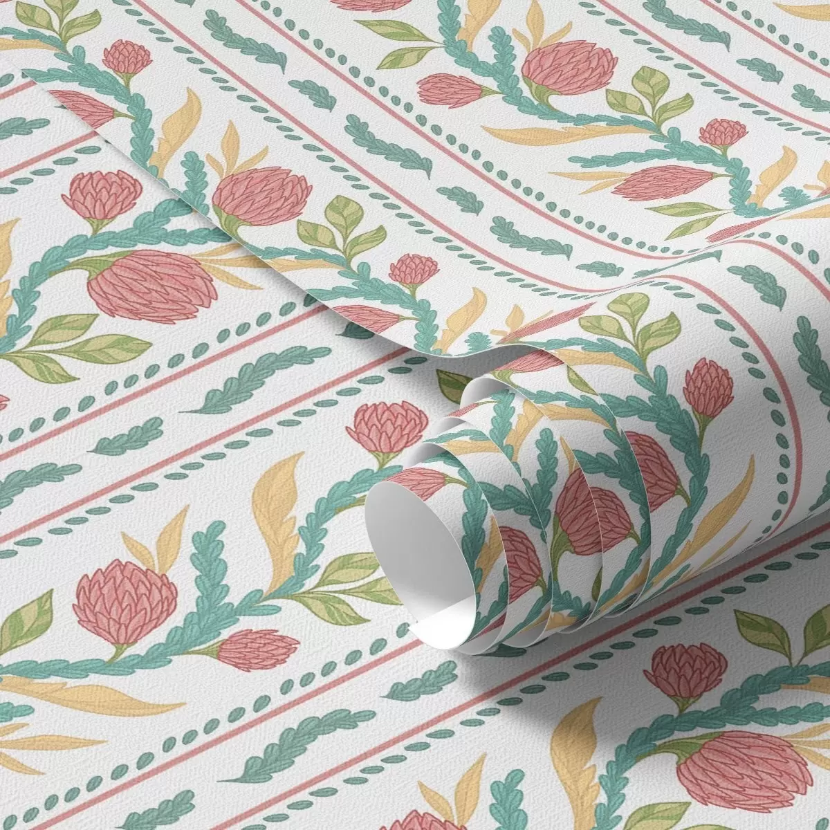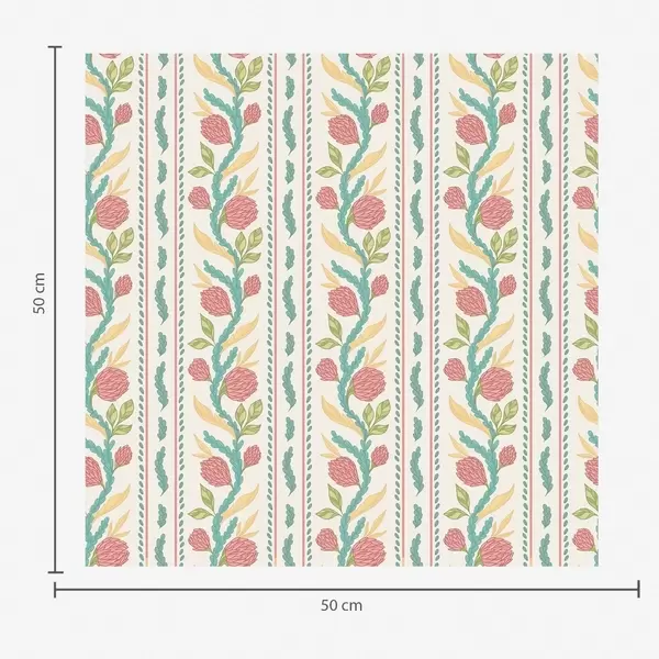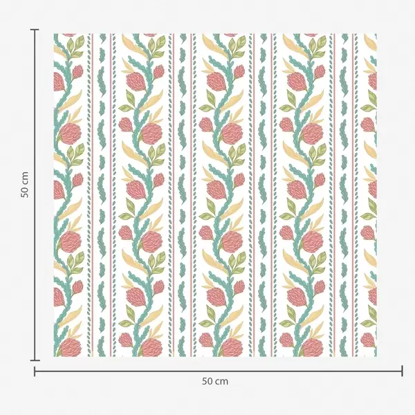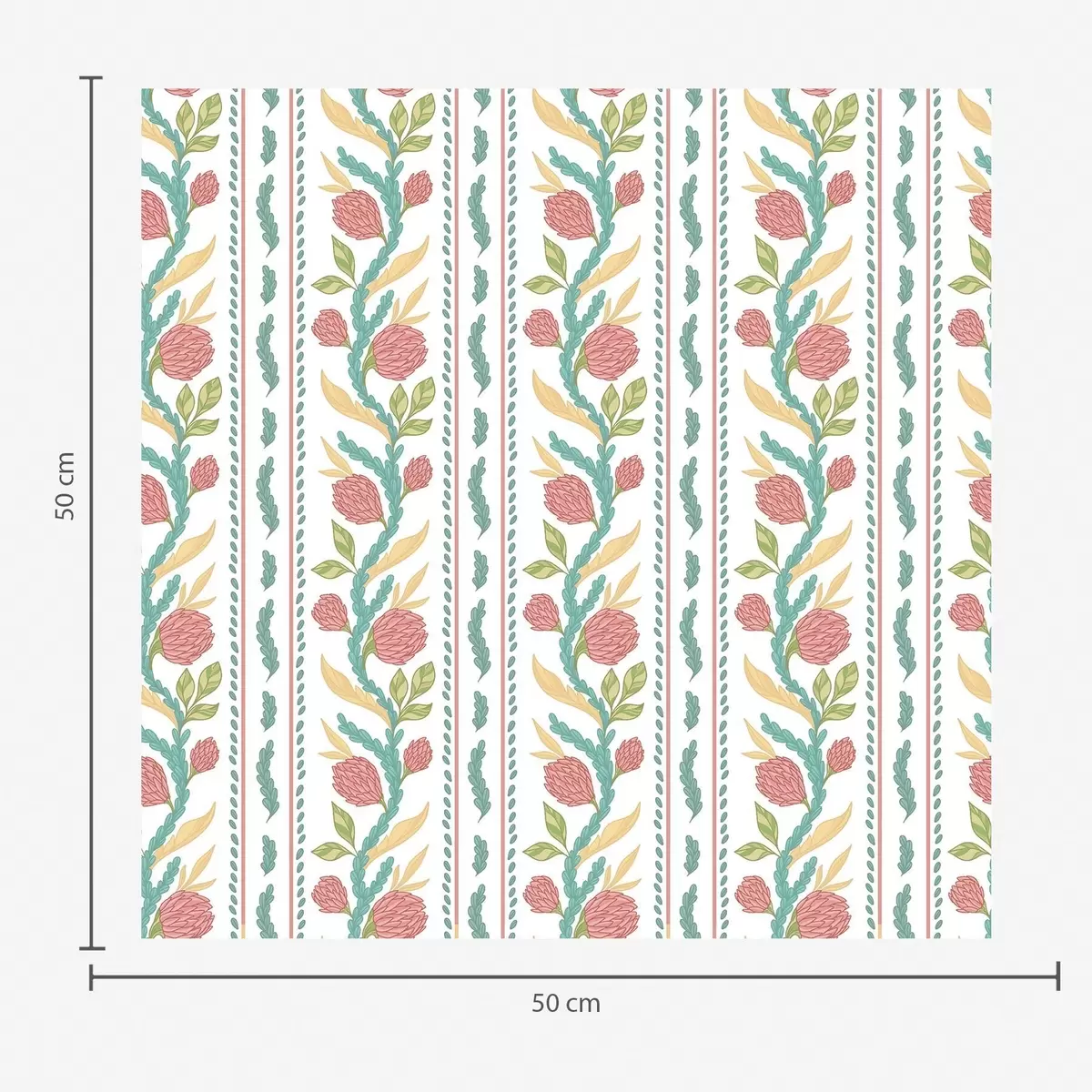 Behang Verticale strepen met koraalkleurige bloemen en turquoise bladeren Nr. a00816