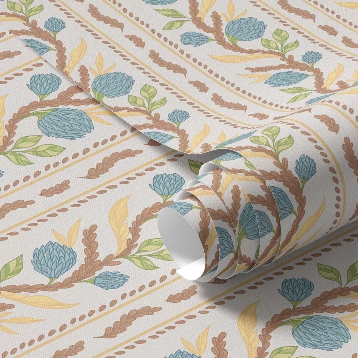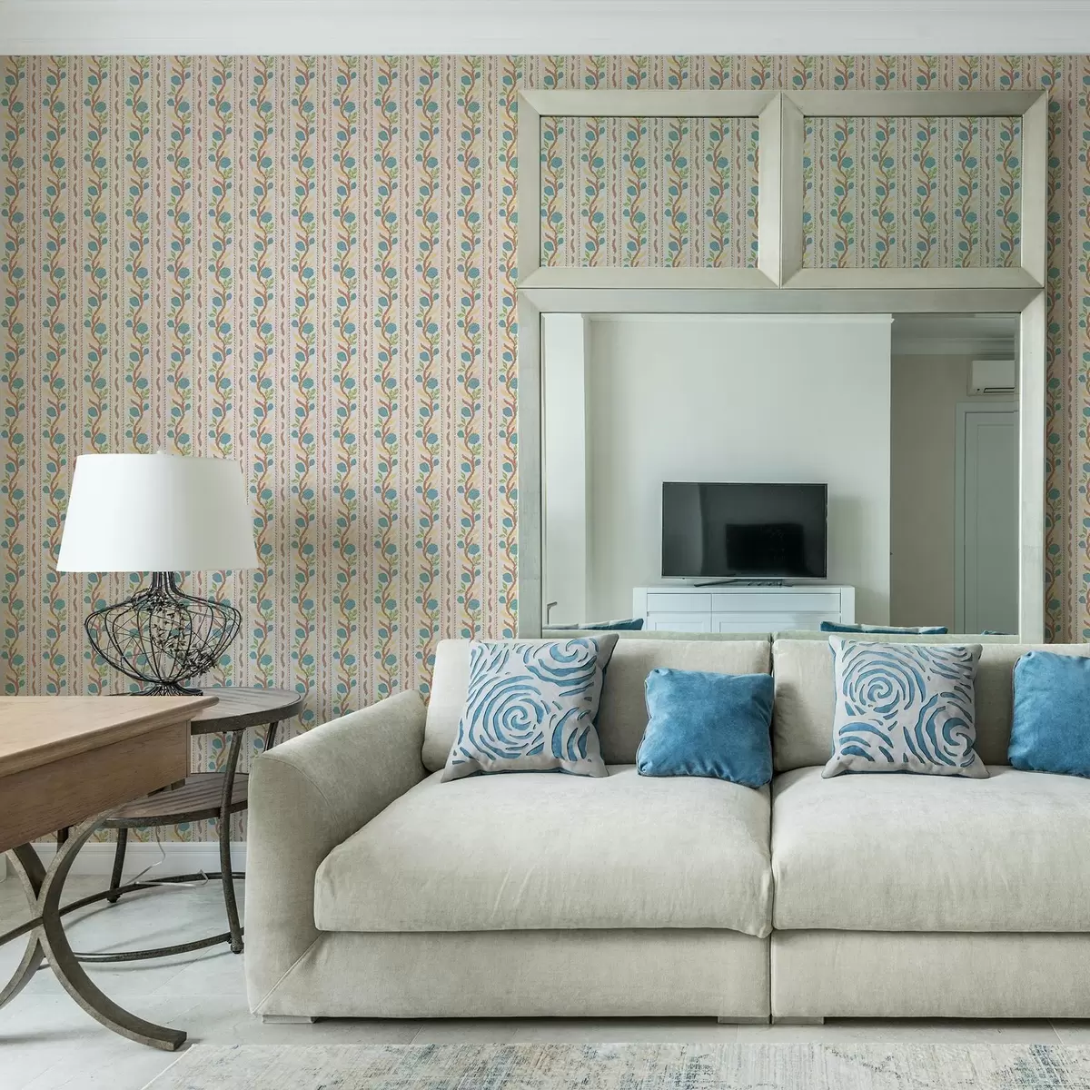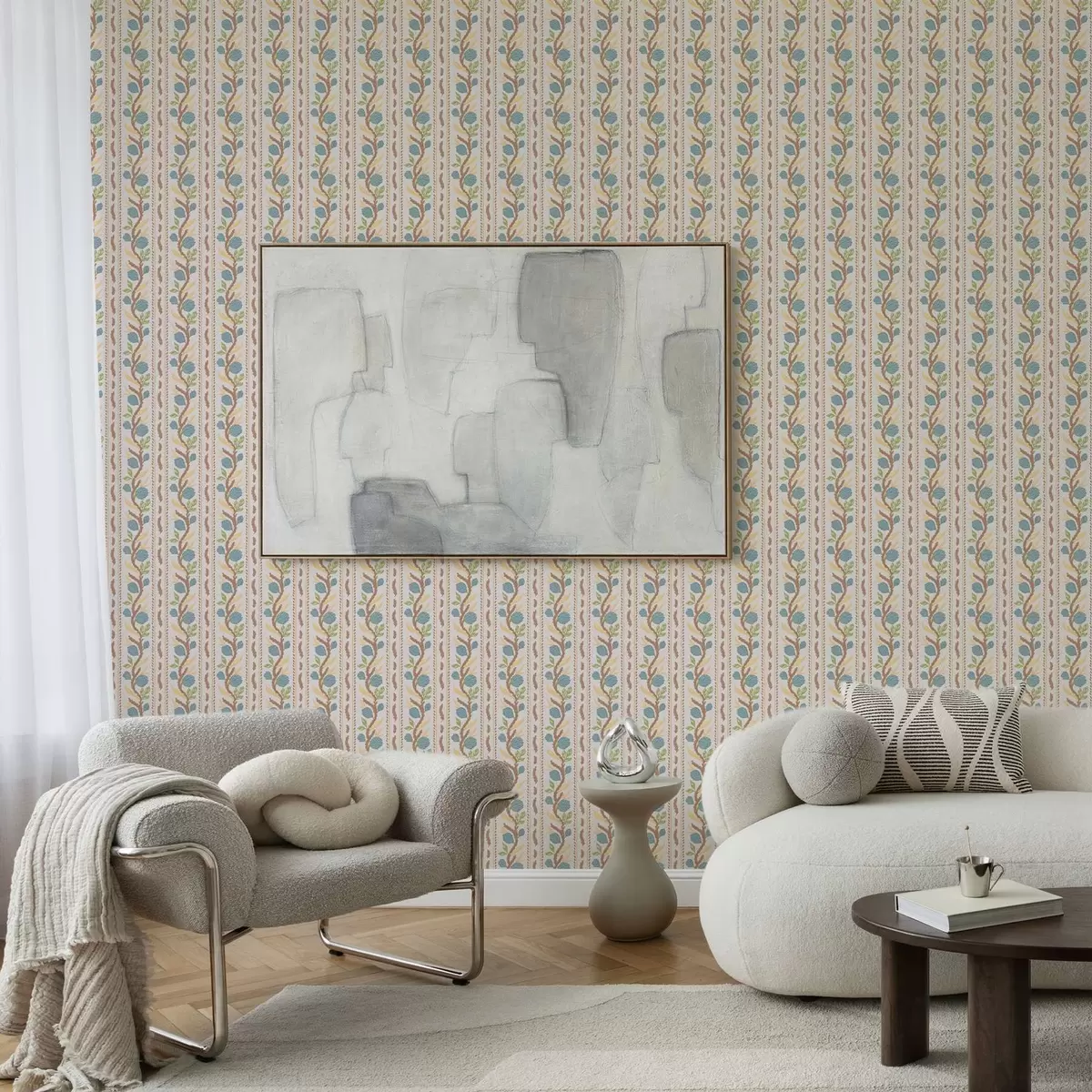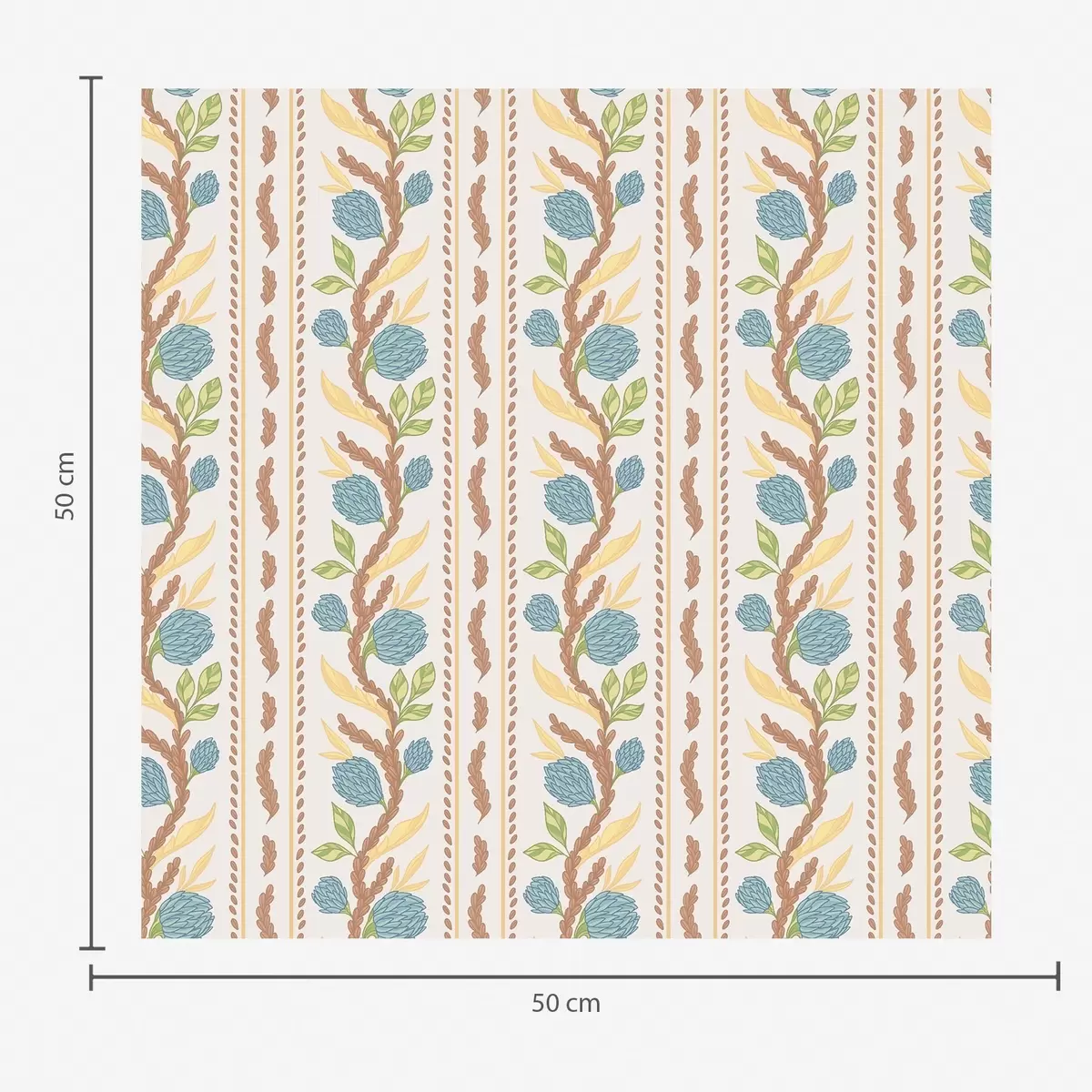 Behang Verticale strepen met blauwe bloemen op een warme achtergrond Nr. a00816v3