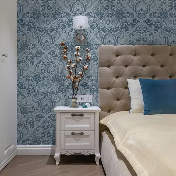 Behang Klassiek damast, diepblauw op lichtblauw Nr. a00826