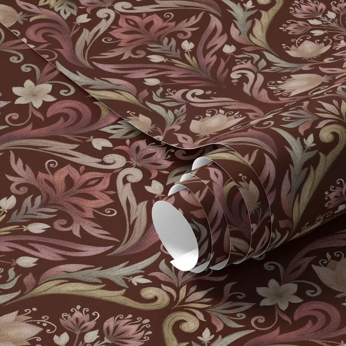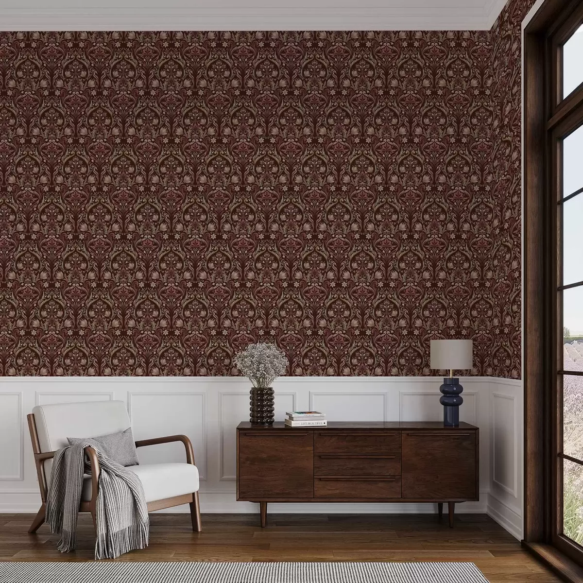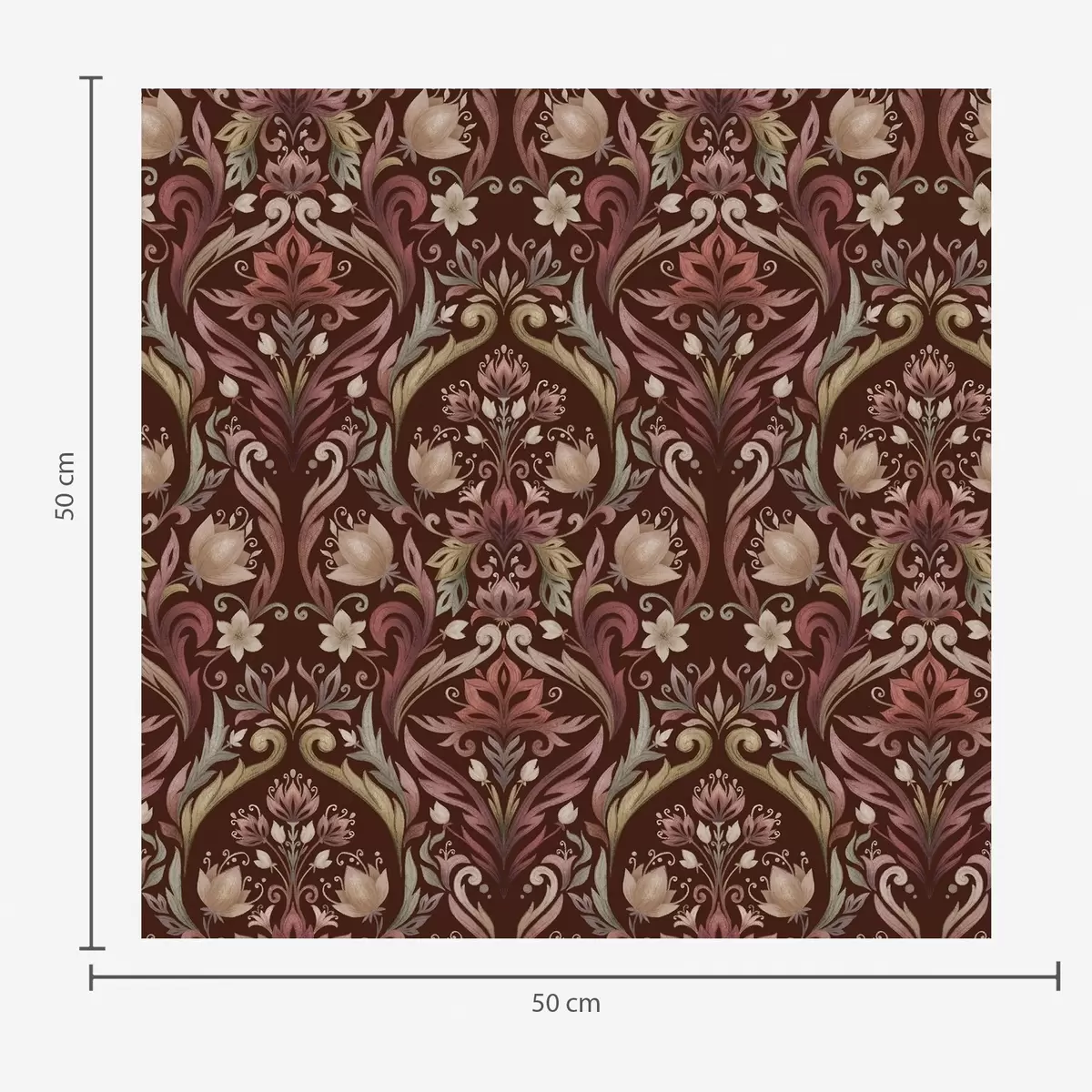 Behang Tulpornament, rijke bordeauxrode achtergrond Nr. a00827v2