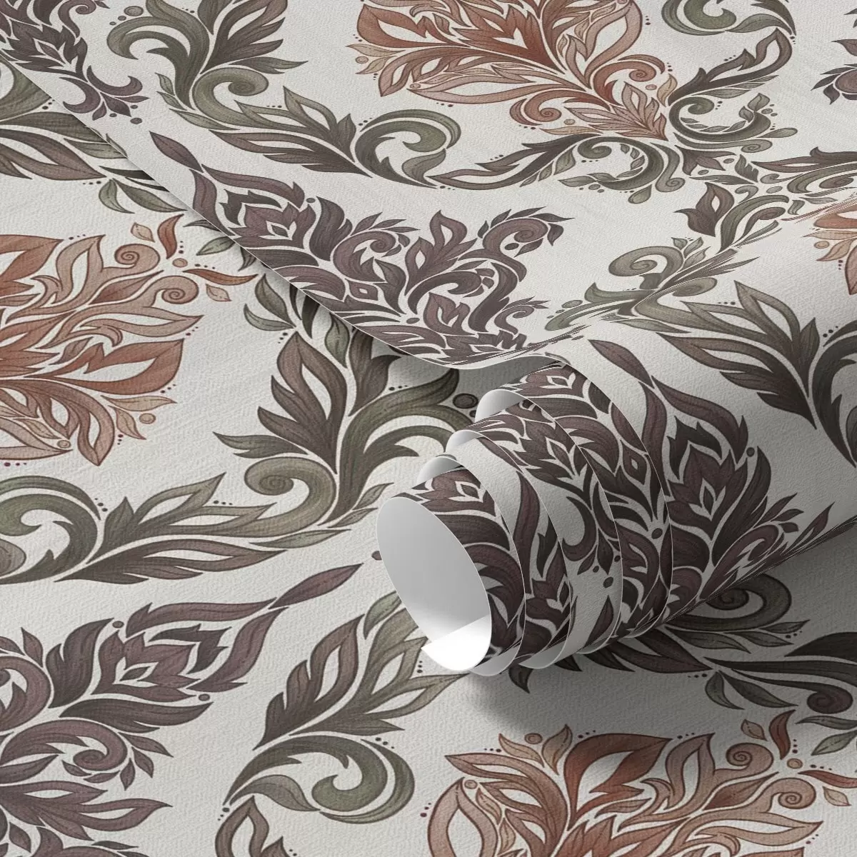 Behang Damast met koperbruine accenten op lichte achtergrond Nr. a00828v4