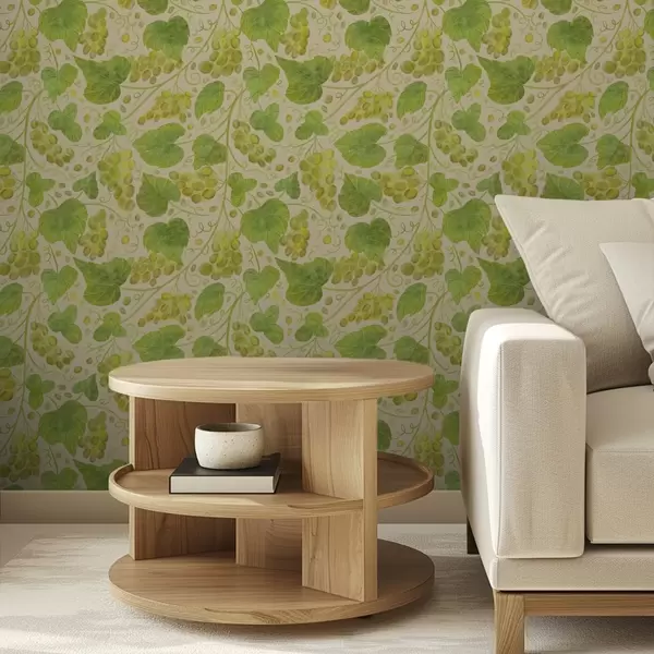 Behang Druiven en groene bladeren op een lichte achtergrond Nr. a00834