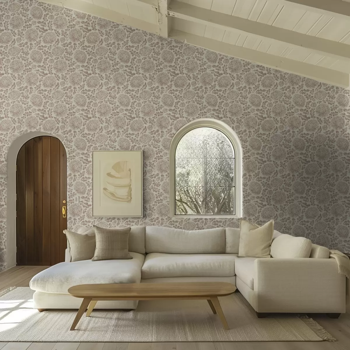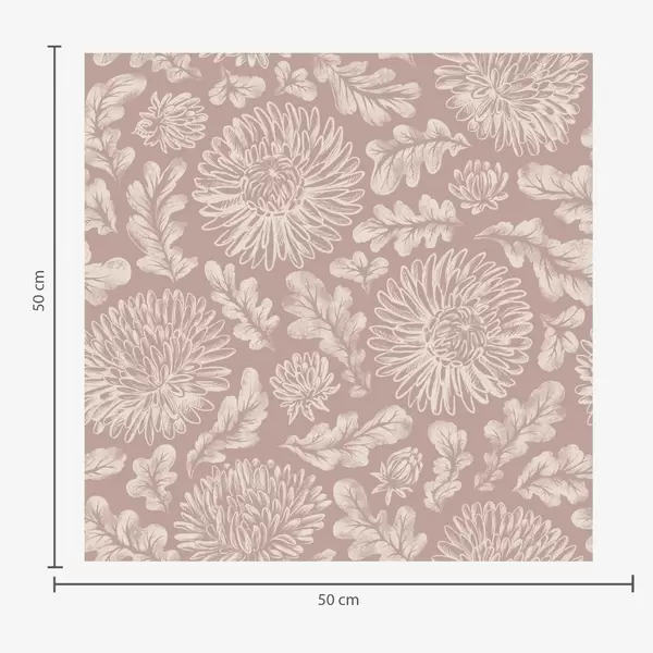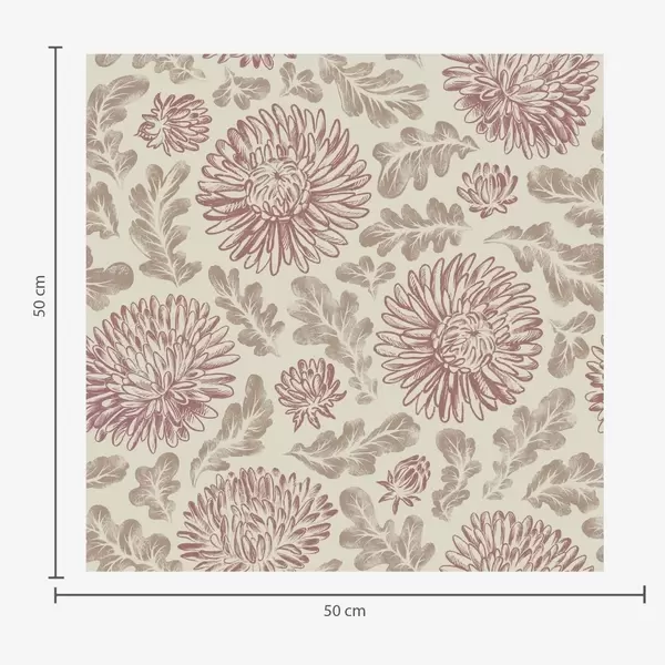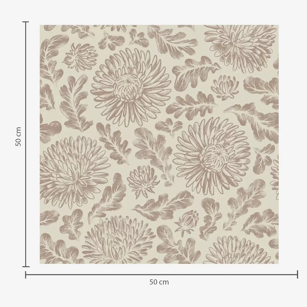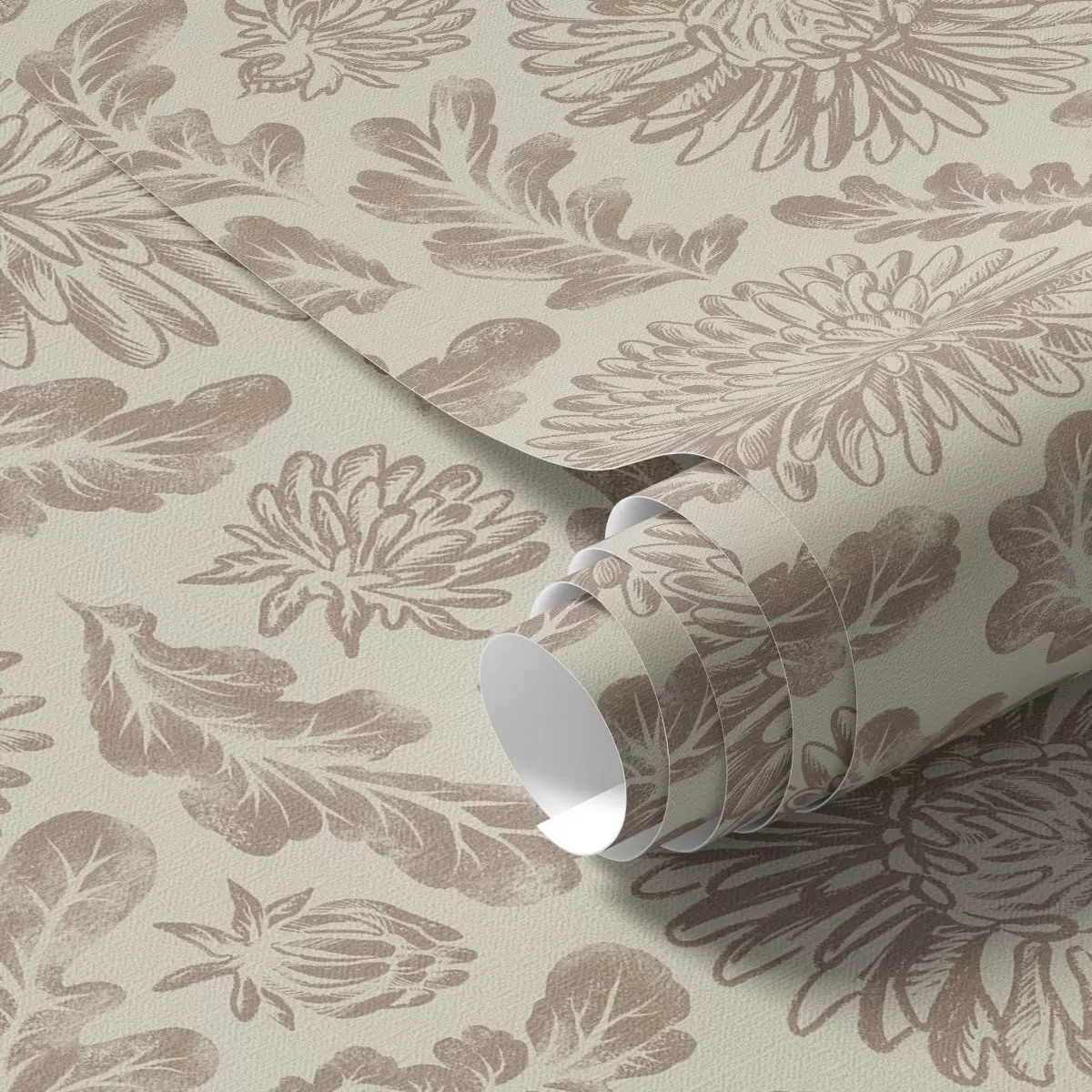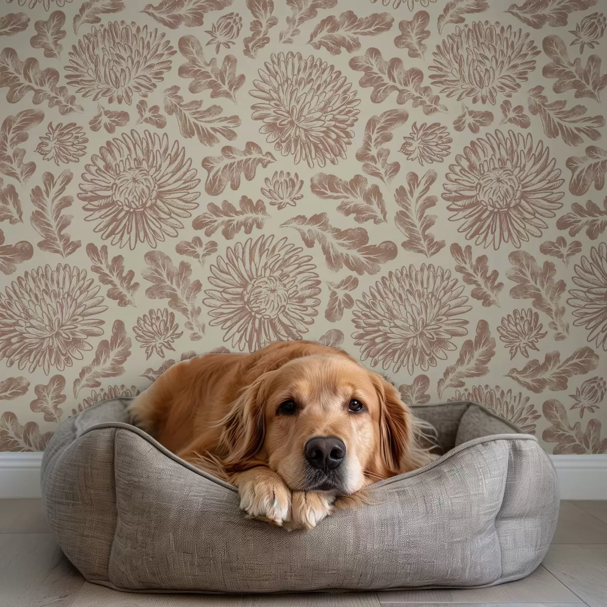 Behang Chrysanten en eikenbladeren in zacht beige-bruin Nr. a00840