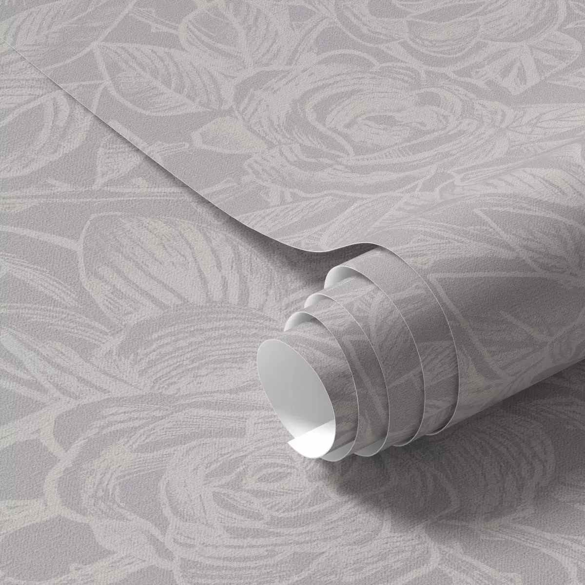 Behang Gegraveerde rozen op lichtgrijs Nr. a00841v1