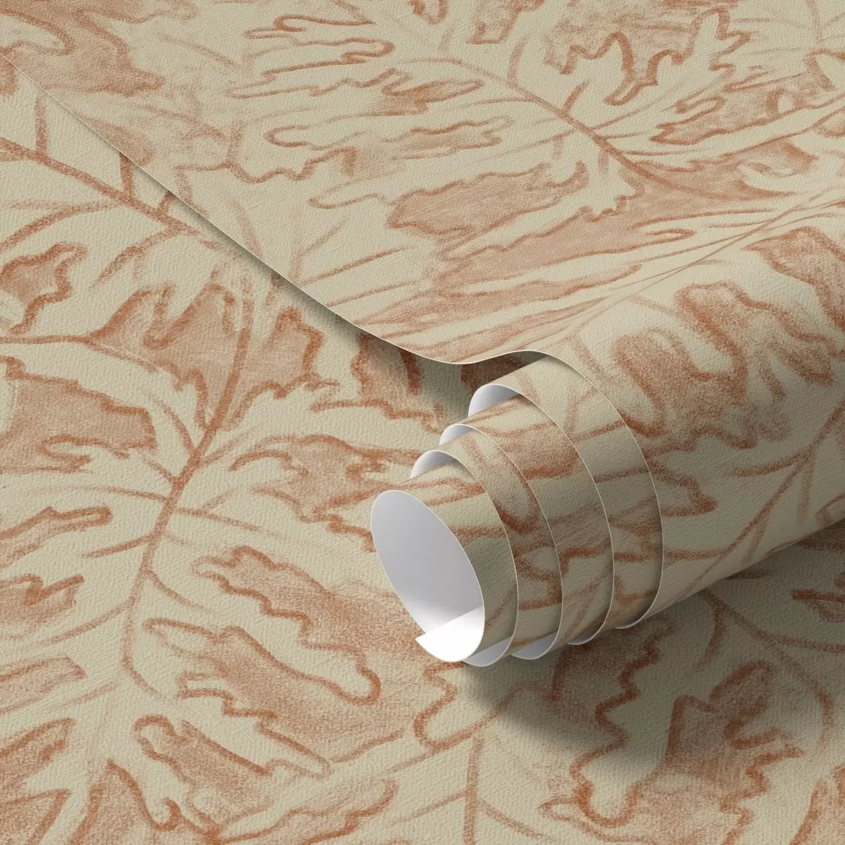 Behang Grote eikenbladeren in terracotta op crème Nr. a00846
