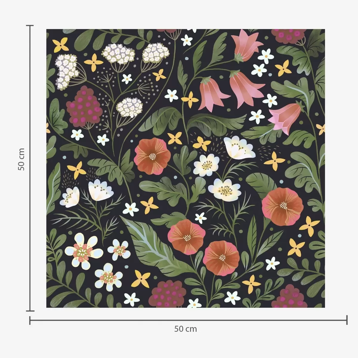 Behang Wilde bloemen en bessen op een diepzwarte achtergrond Nr. a00849v3