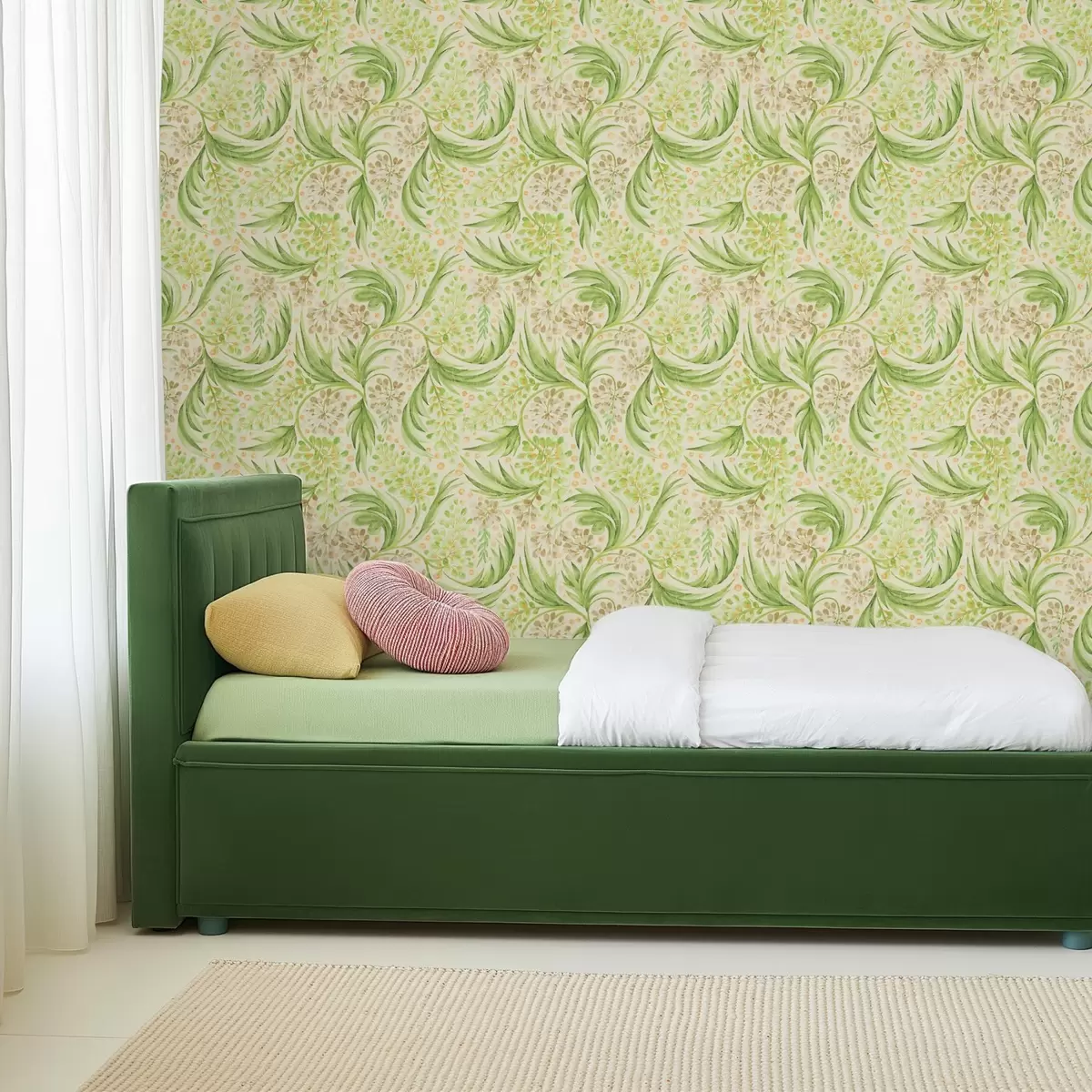 Behang Licht bloemenpatroon in zachte groene tinten Nr. a00853