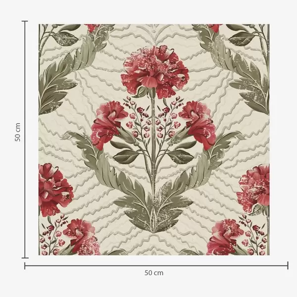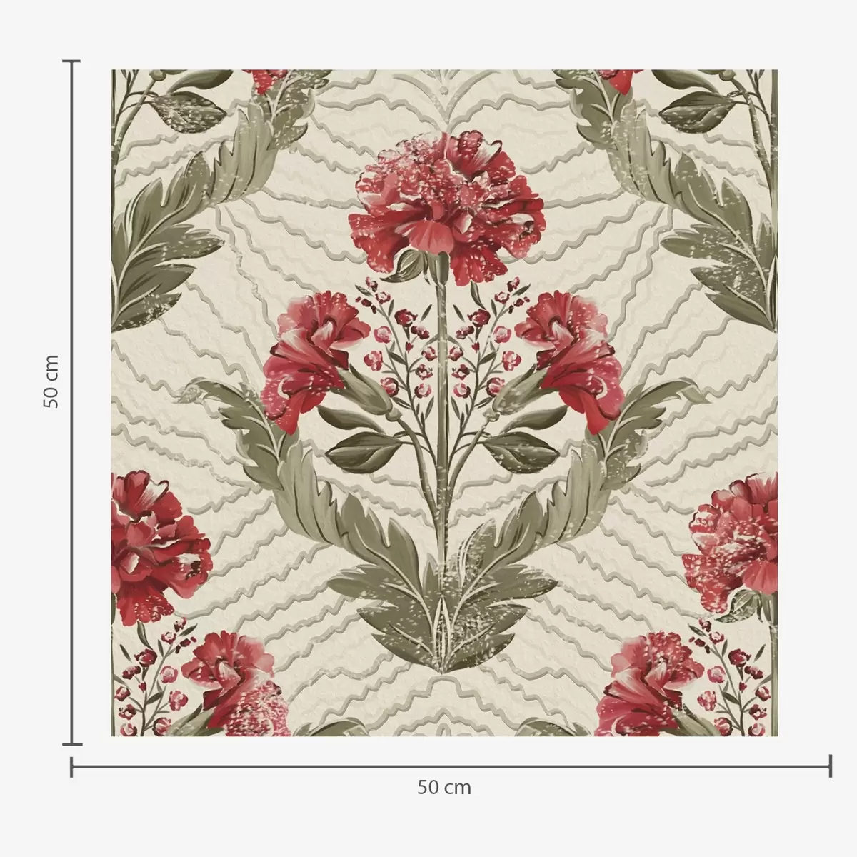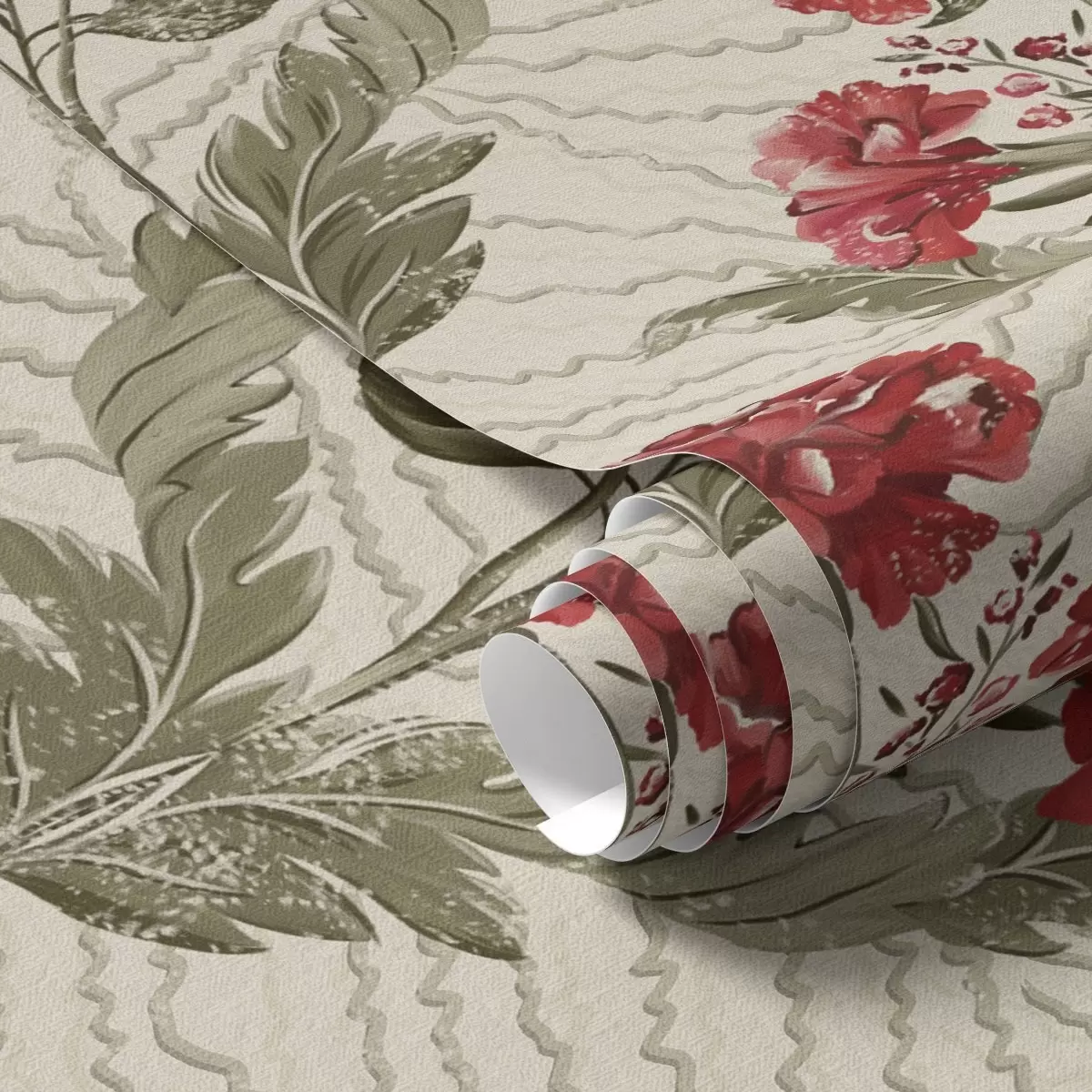 Behang Grote rode pioenrozen met grafische achtergrond, crèmekleurige achtergrond Nr. a00857