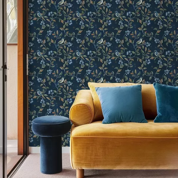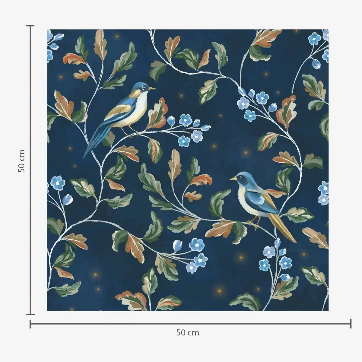 Behang Tieten op takken, nachtblauwe achtergrond met vonken Nr. a00858