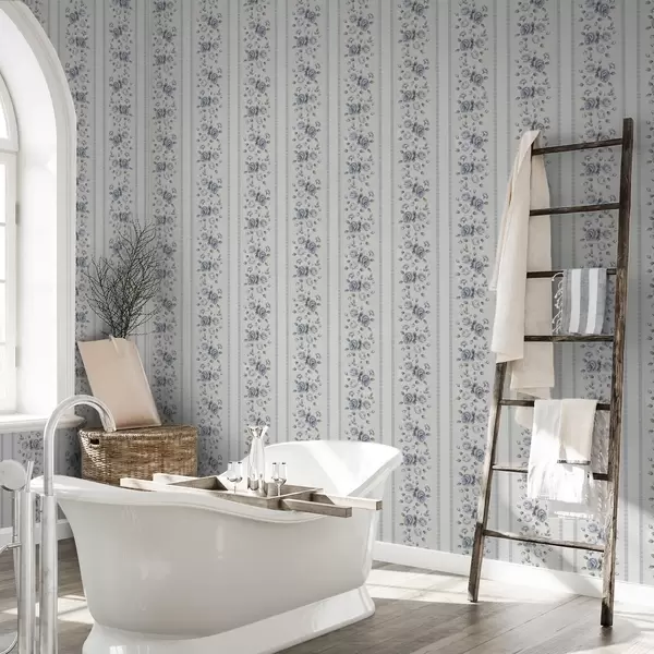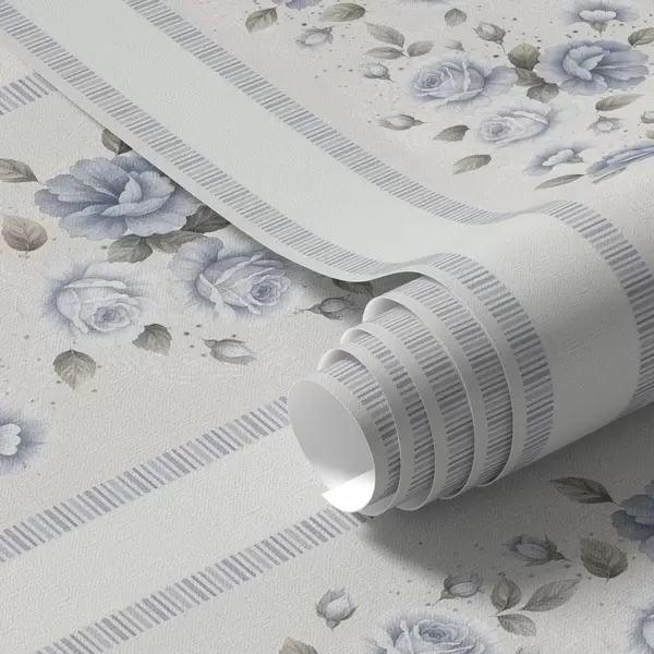 Behang Blauwe rozen in verticale banden op een lichte achtergrond Nr. a00860