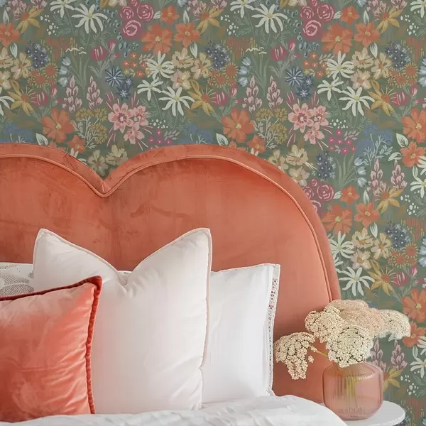 Behang Schilderachtige weidebloemen op saliegroen Nr. a00864