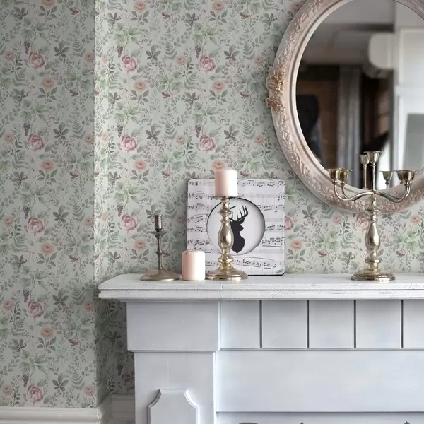 Behang Pastelkleurige tuin met rozen, varens en druiven Nr. a00867