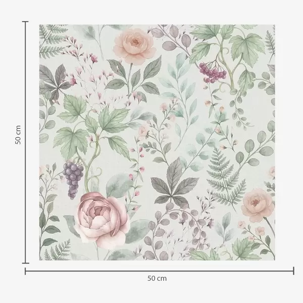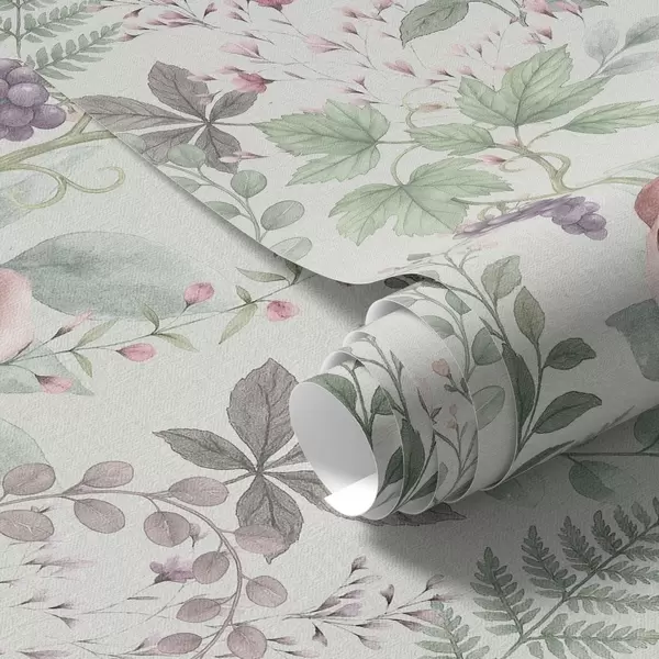 Behang Pastelkleurige tuin met rozen, varens en druiven Nr. a00867