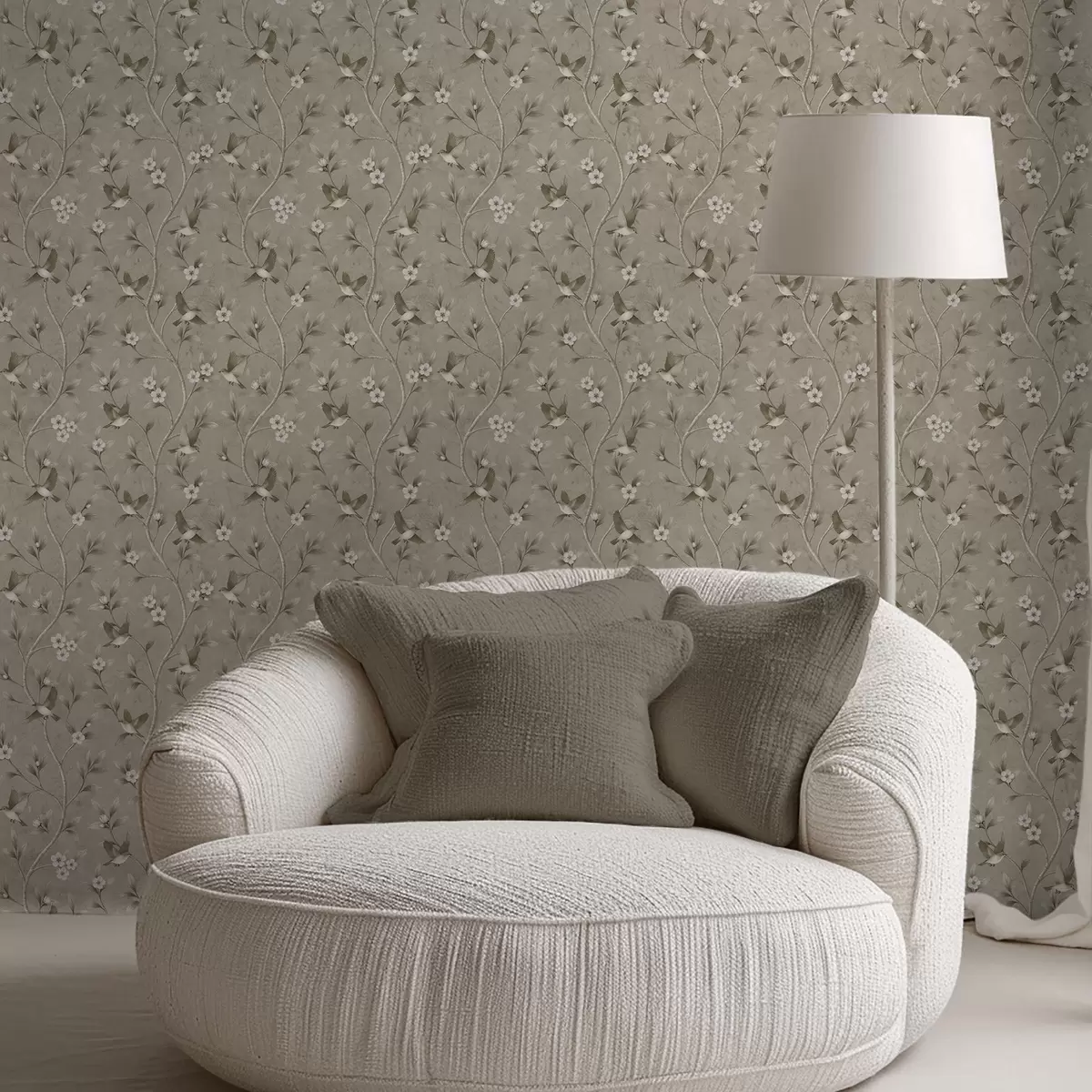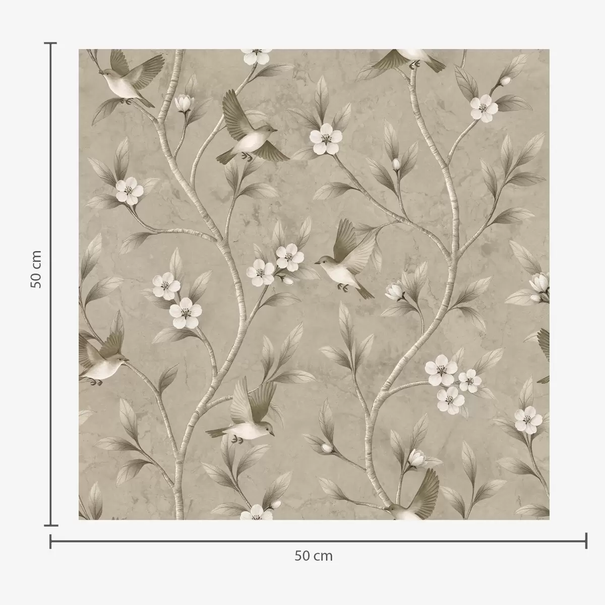 Behang Vogels en bloeiende takken in warme sepia-tinten Nr. a00882