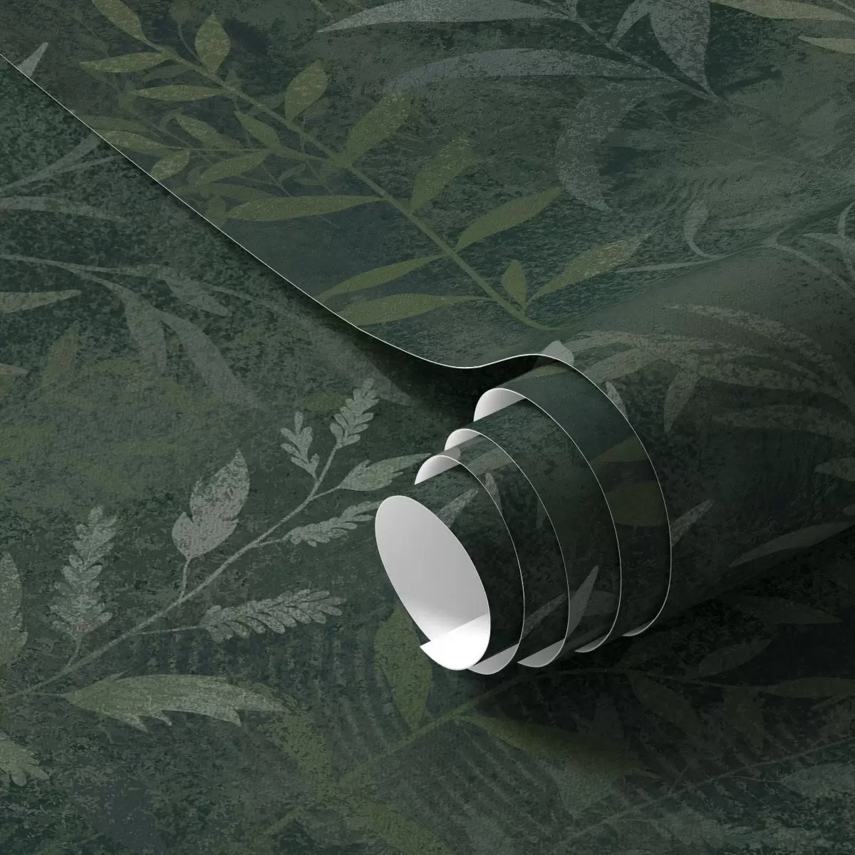 Behang Donkergroene achtergrond met doorschijnende bladeren Nr. a00888