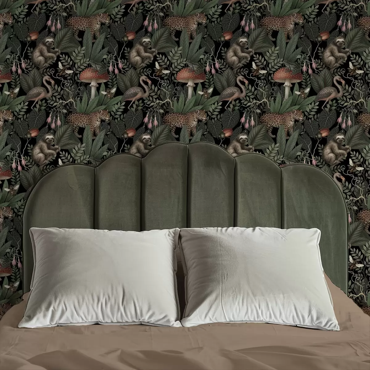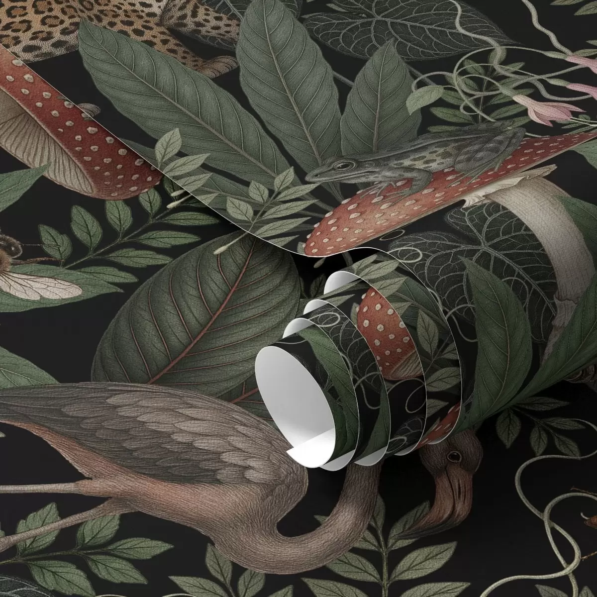 Behang Nachtelijke junglebewoners in weelderig gedetailleerd groen Nr. a00896