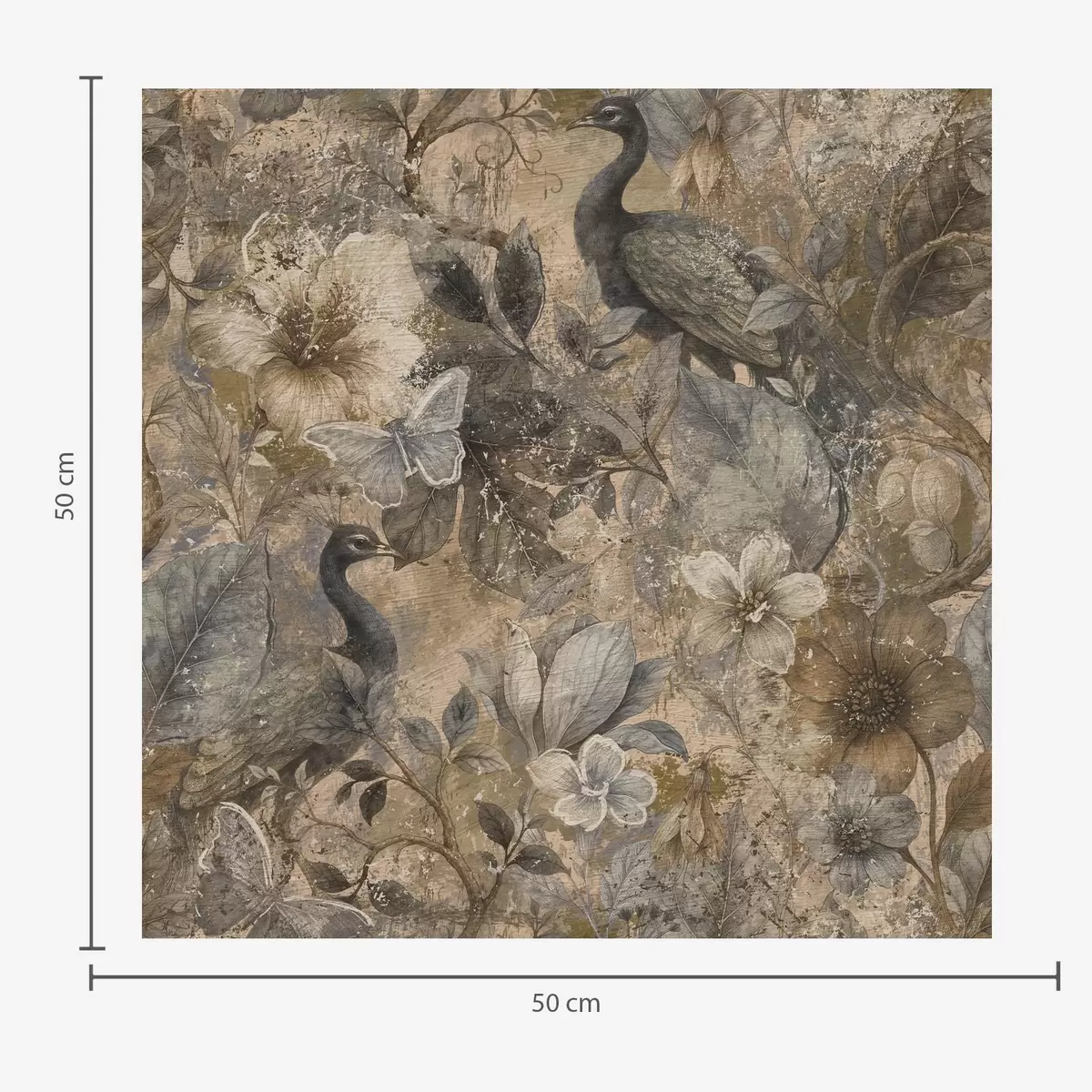 Behang Verouderde bloemencollage met pauwen en vlinders Nr. a00897