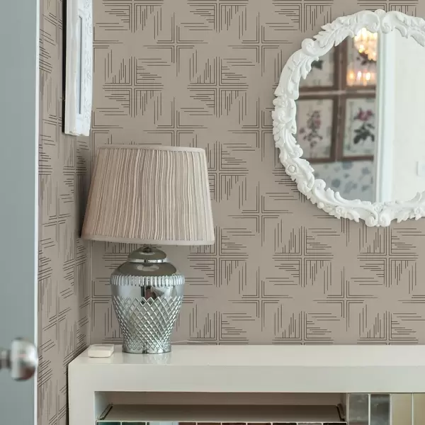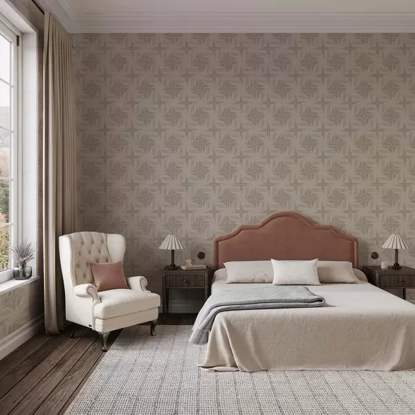 Behang Cacaolijnwerkroosters met kleine centrale kruisjes, beige Nr. a00911