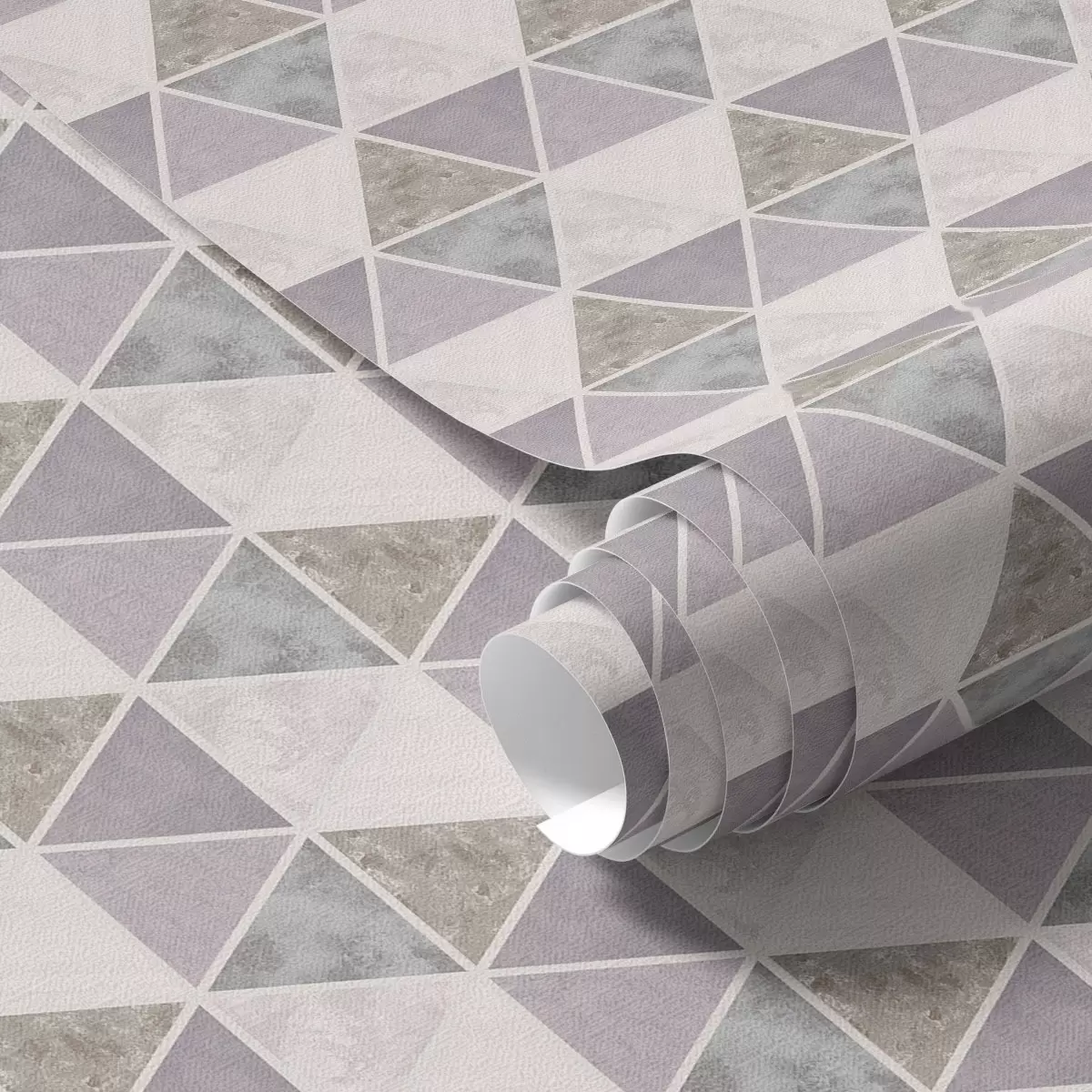 Behang Driehoeken met gestructureerde inzetstukken, een lila-grijze mix Nr. a00917