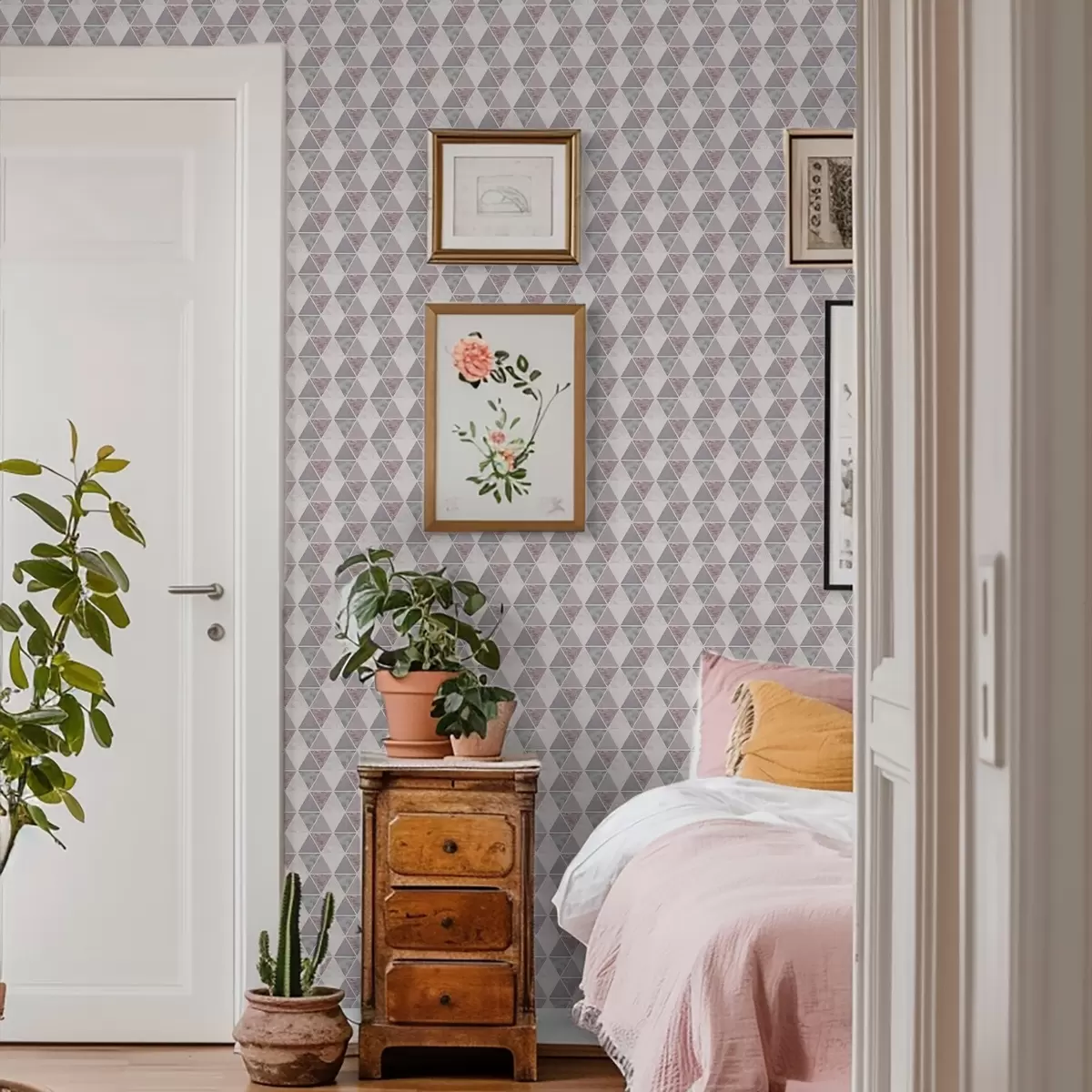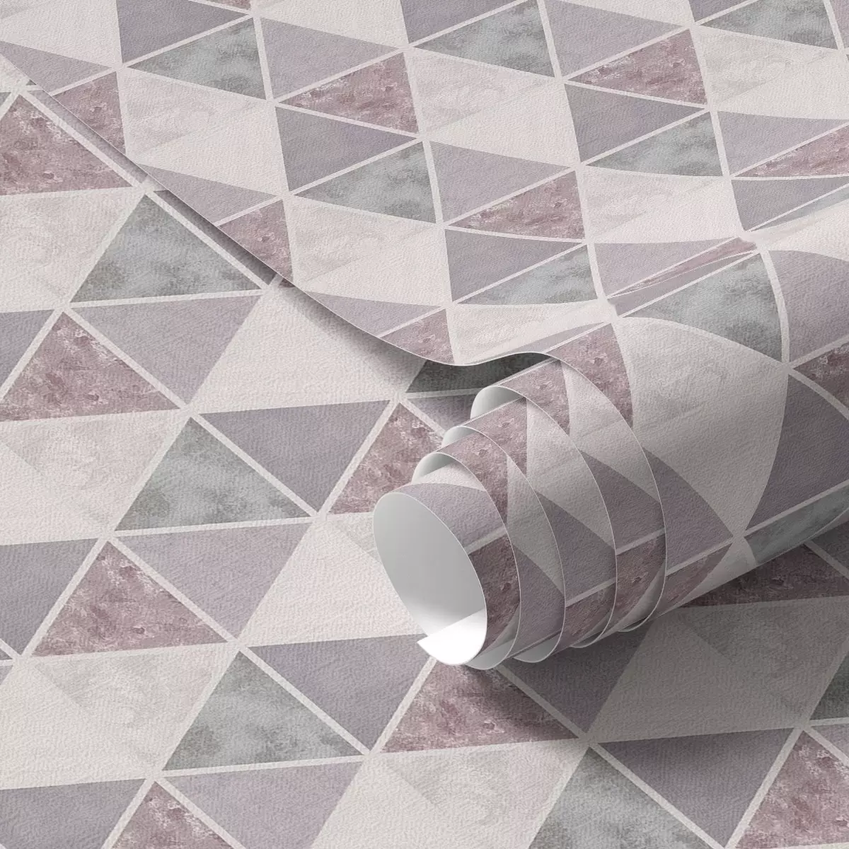 Behang Zachte driehoeken in grijsroze en poederachtige tinten Nr. a00918