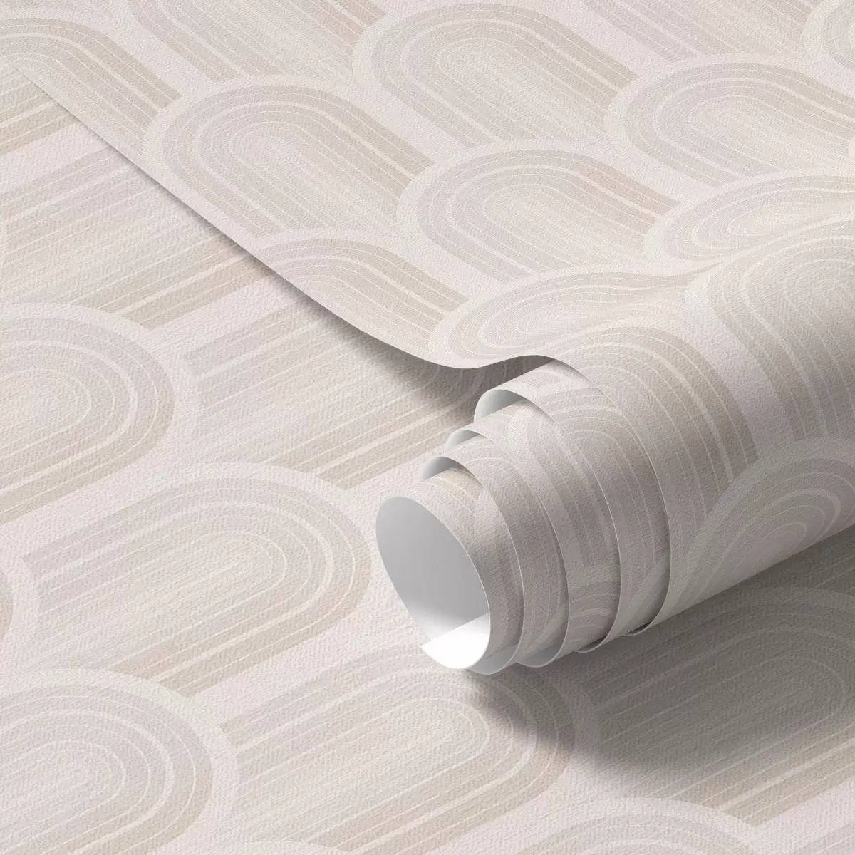 Behang Rij boogvormen in zachte beige strepen, retro sfeer Nr. a00923