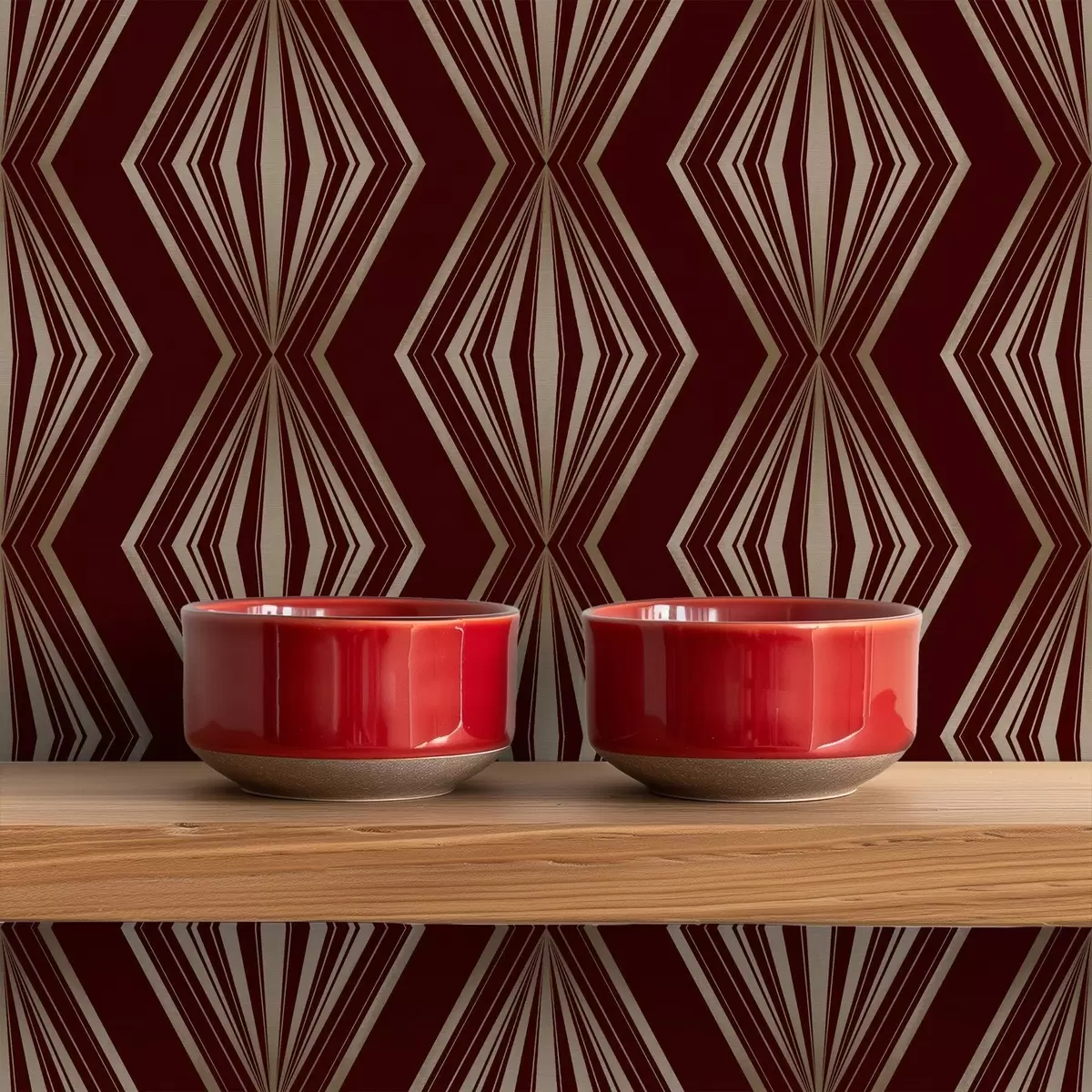 Behang Diamantvormig geometrisch patroon op een wijnbruine achtergrond Nr. a00925v1