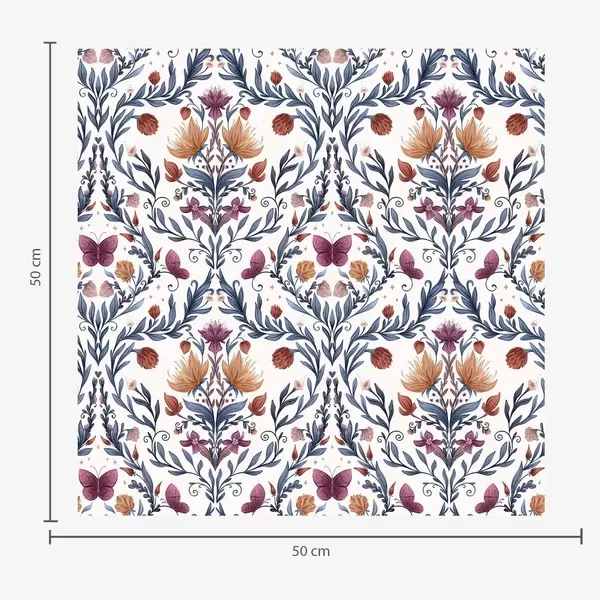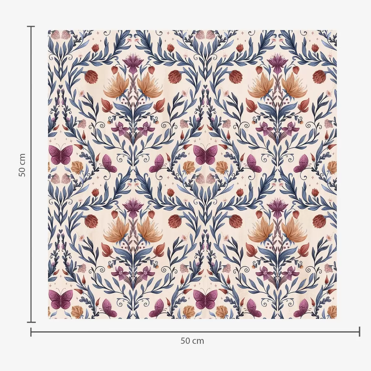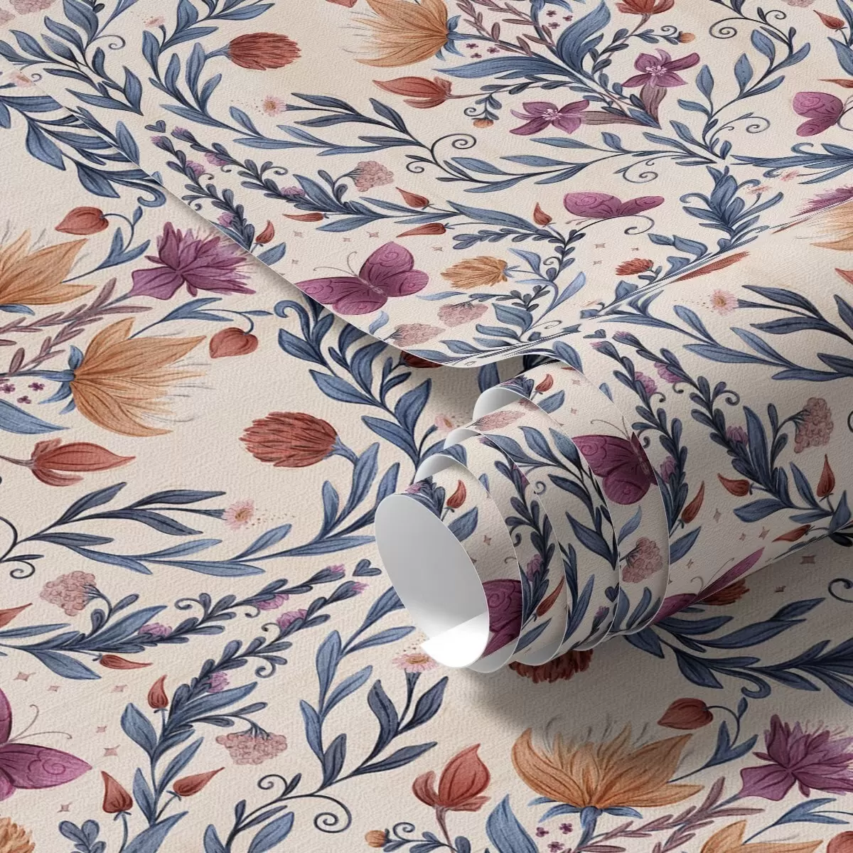 Behang Bloemenmotief met vlinders op een zachte perzikkleurige achtergrond Nr. a00926