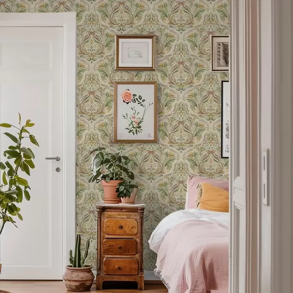 Behang Waterverfbladeren in groene en warme okertinten Nr. a00927