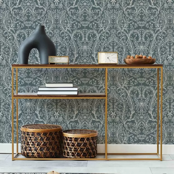 Behang Lineair bloemenornament op een blauwgrijze achtergrond Nr. a00929v1