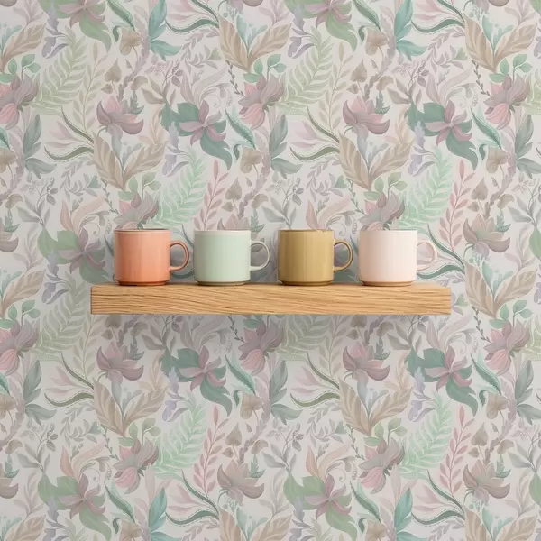 Behang Delicate pastelkleurige bloemen en bladeren op een lichte achtergrond Nr. a00931