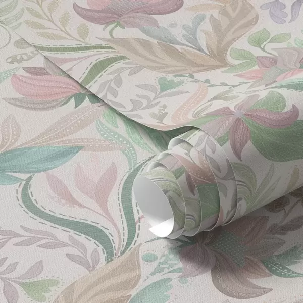 Behang Delicate pastelkleurige bloemen en bladeren op een lichte achtergrond Nr. a00931