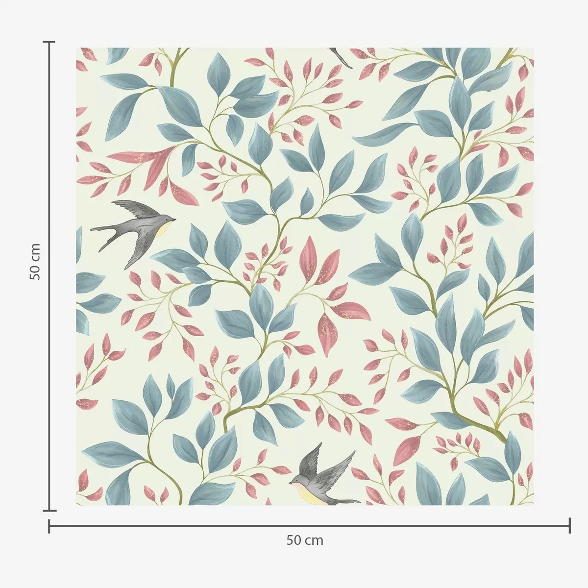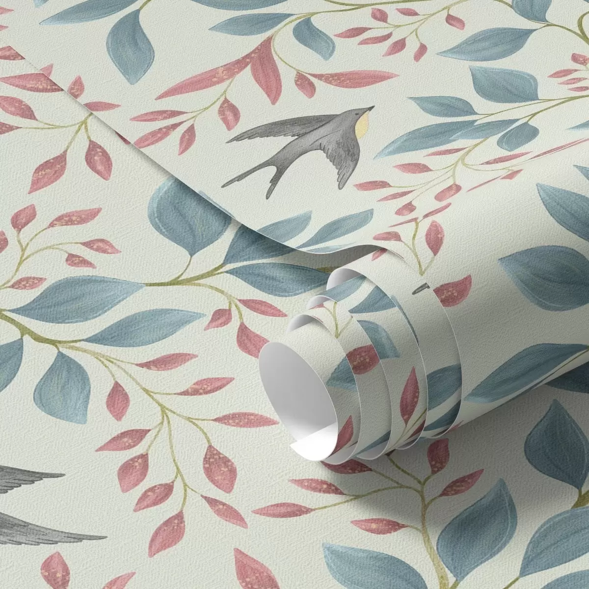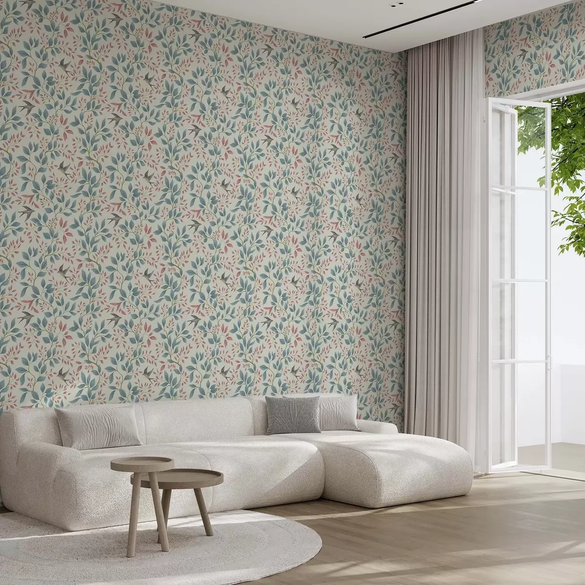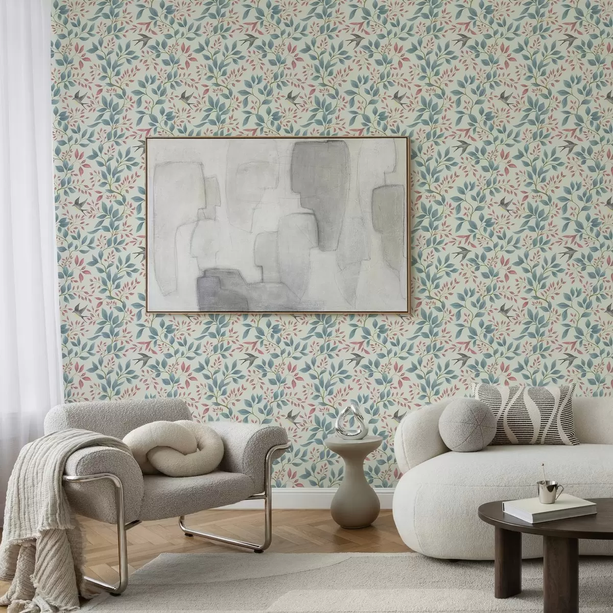 Behang Luchtige takken en vogels op een lichte muntkleurige achtergrond Nr. a00933v1