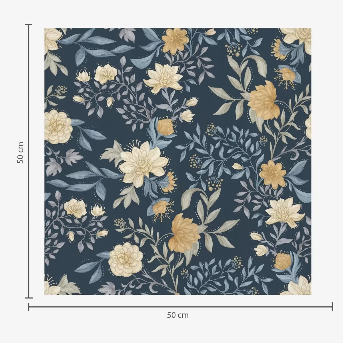Behang Gele en blauwe bloemen op een donkere avondblauwe achtergrond Nr. a00934v1