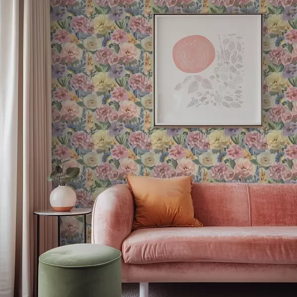 Behang Pastelkleurige bloemen met vage contouren, zacht kleurenpalet Nr. a00954